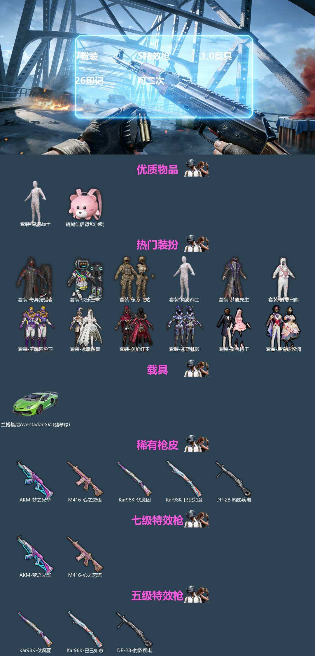 【483036】【可二次】【苹果QQ】龟仙人 木乃伊 王牌四分卫 迪迦奥特曼 炙焰红王 苍蓝魅影 东方飞龙 机械英豪 快乐主宰 机械征服者 M416-心之恋语 浪漫假日 影双刃 瑞龙福将 抹茶蜜豆 98K-伏魔团 纯白誓言 团圆交子 兰博SVJ绿色 奇异狩猎者 黑色刀锋 蜜桃特工 AKM-梦之光华 狂战萌兔 幻影公爵 冰霜白皇 雪山精英 静谧青瓷