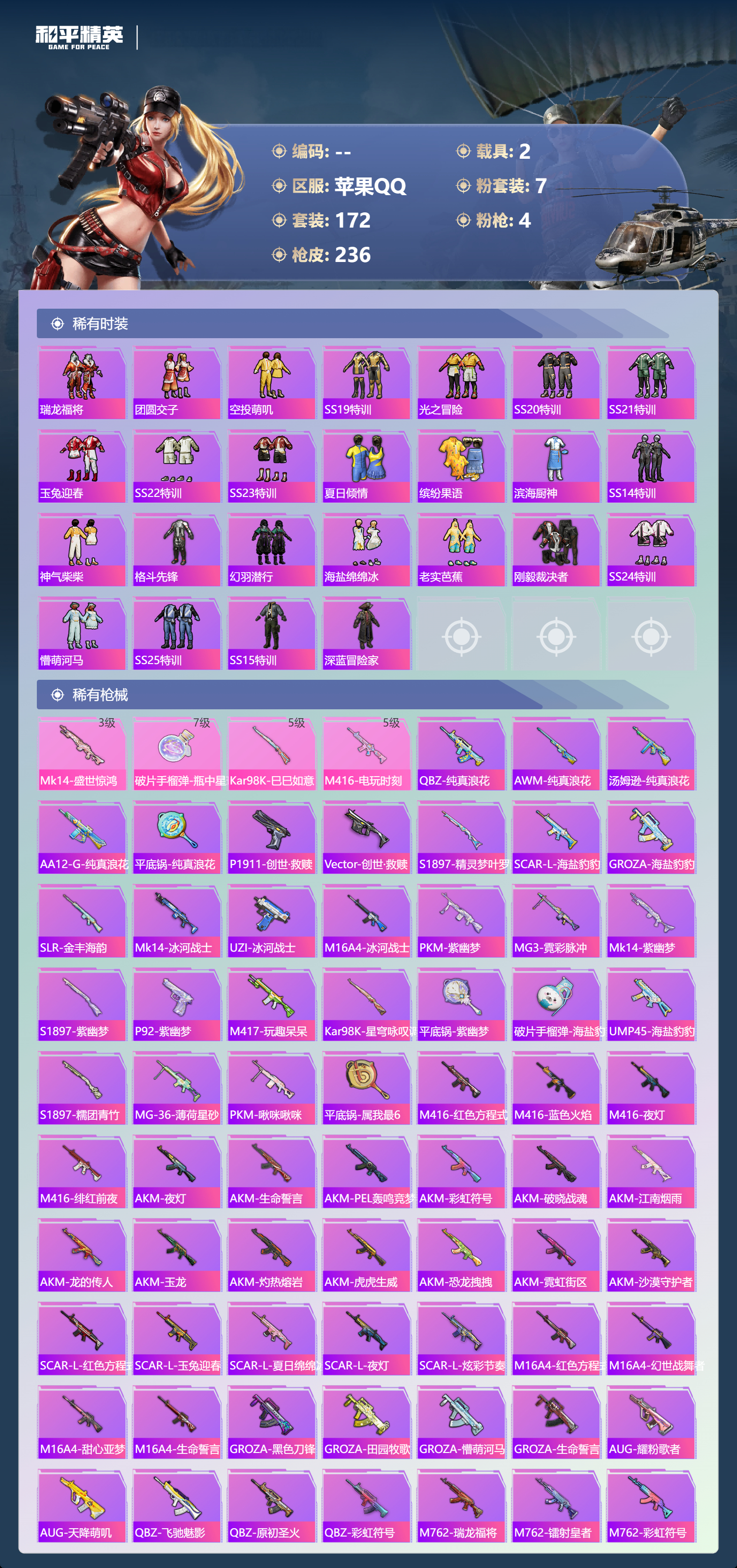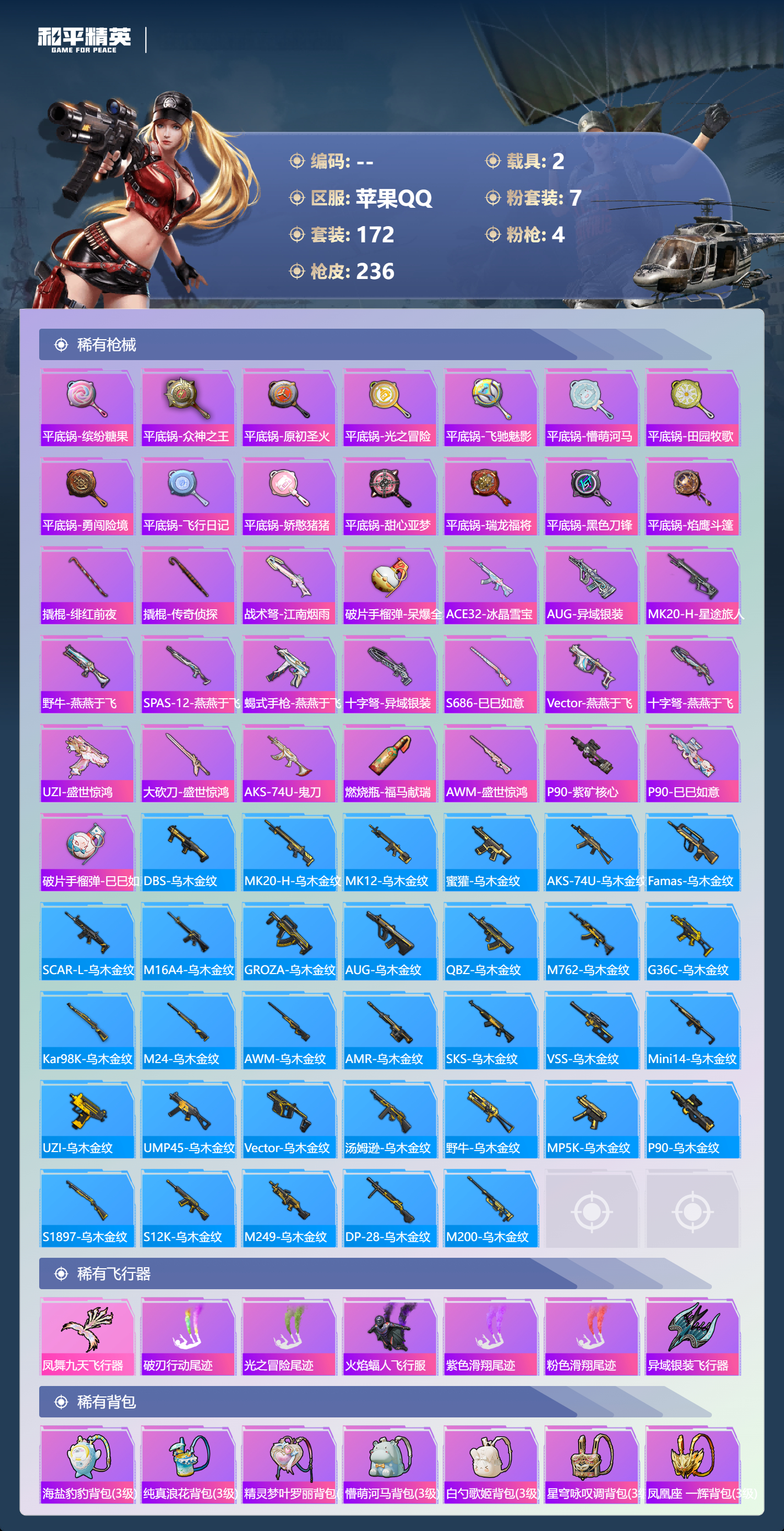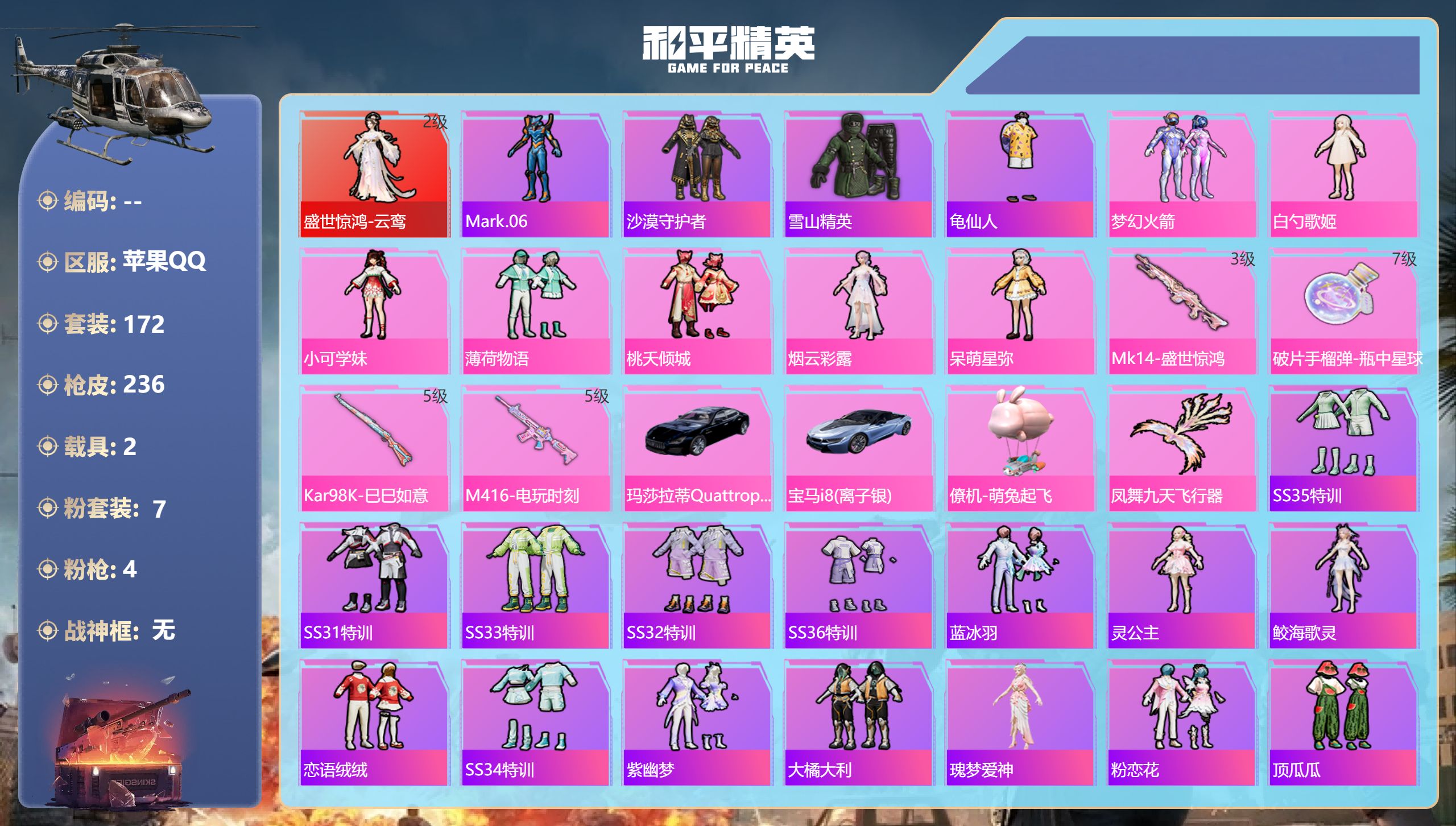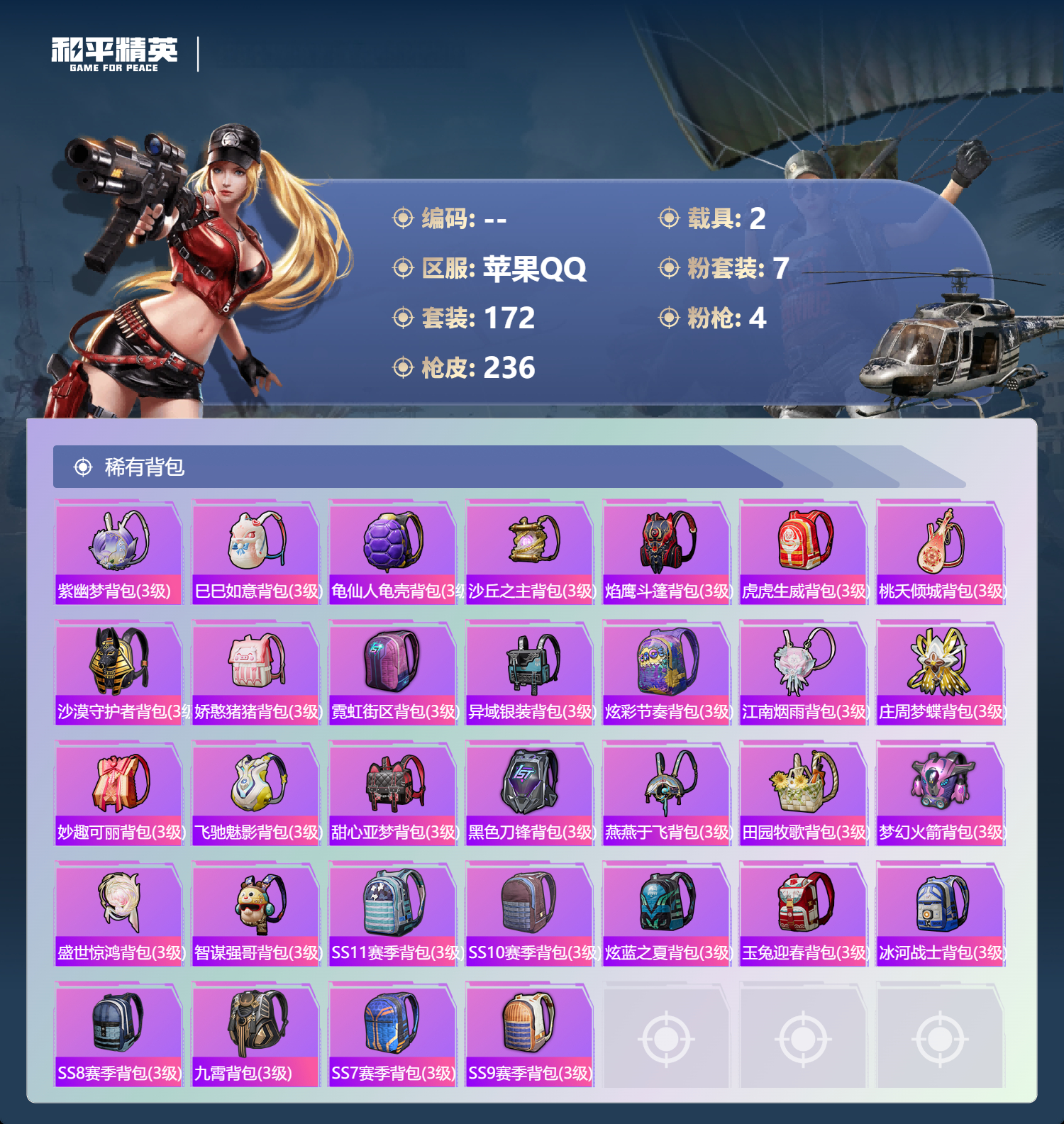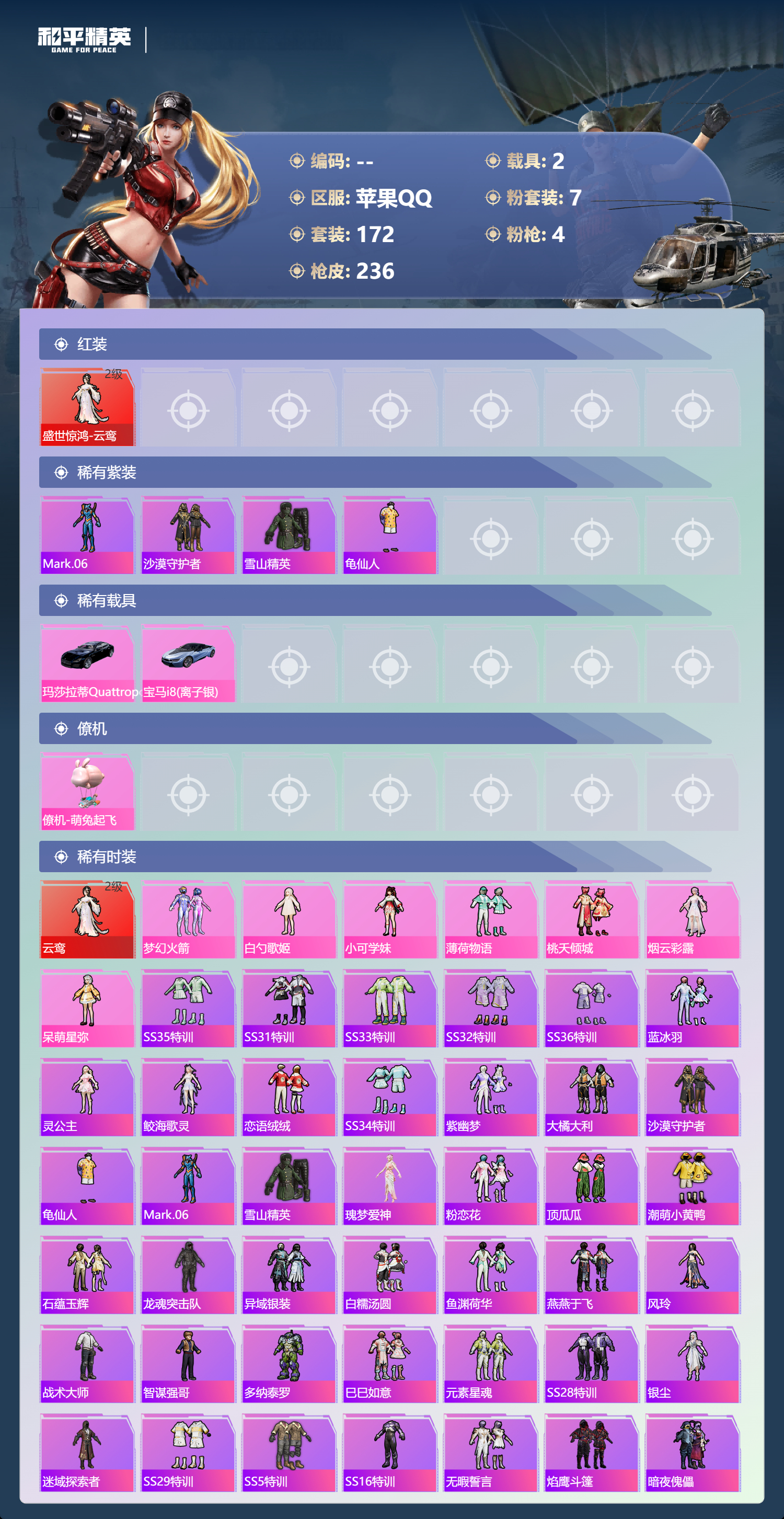 游戏区服:和平精英 / 苹果系统 / QQ帐号