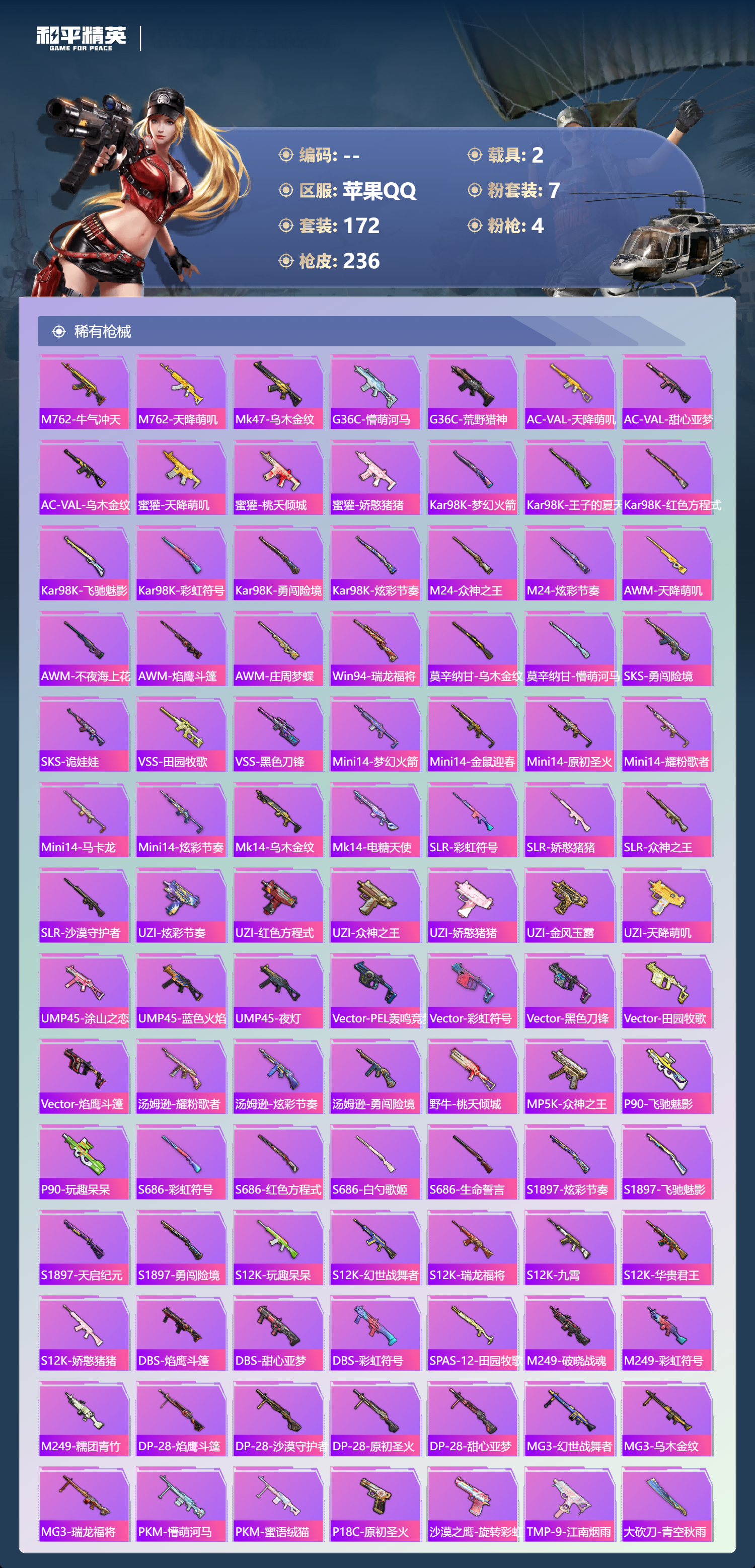 【483366】【可二次】【苹果QQ】龟仙人 萌兔起飞 M762-瑞龙福将 潮萌小黄鸭 黑色刀锋 极速红龙 M416-电玩时刻 盛世惊鸿-云鸾 梦幻火箭 瑞龙福将 激萌小黄鸭 薄荷物语 沙漠守护者 雪山精英 团圆交子
