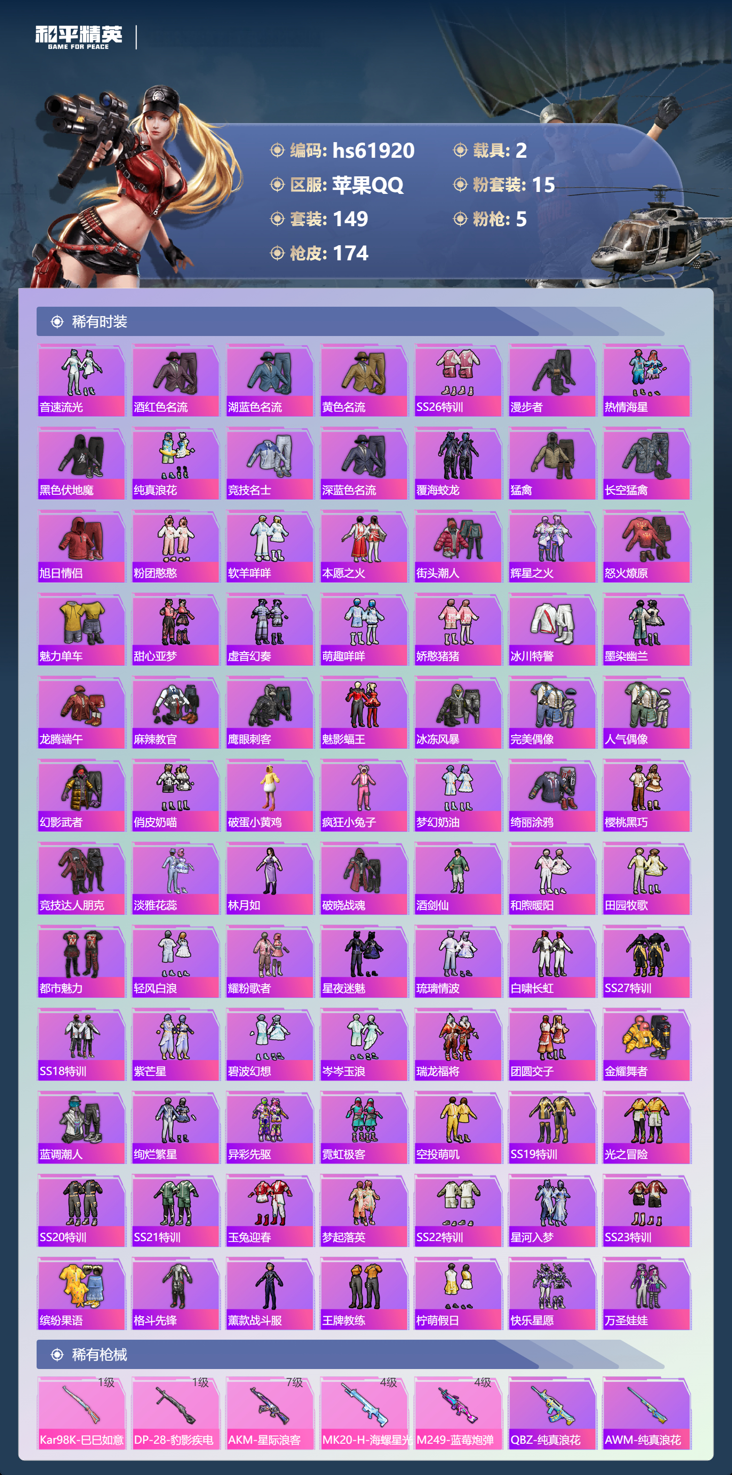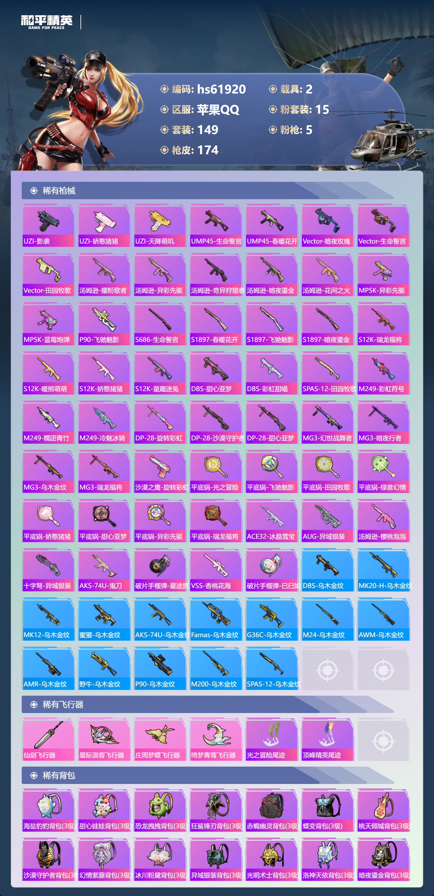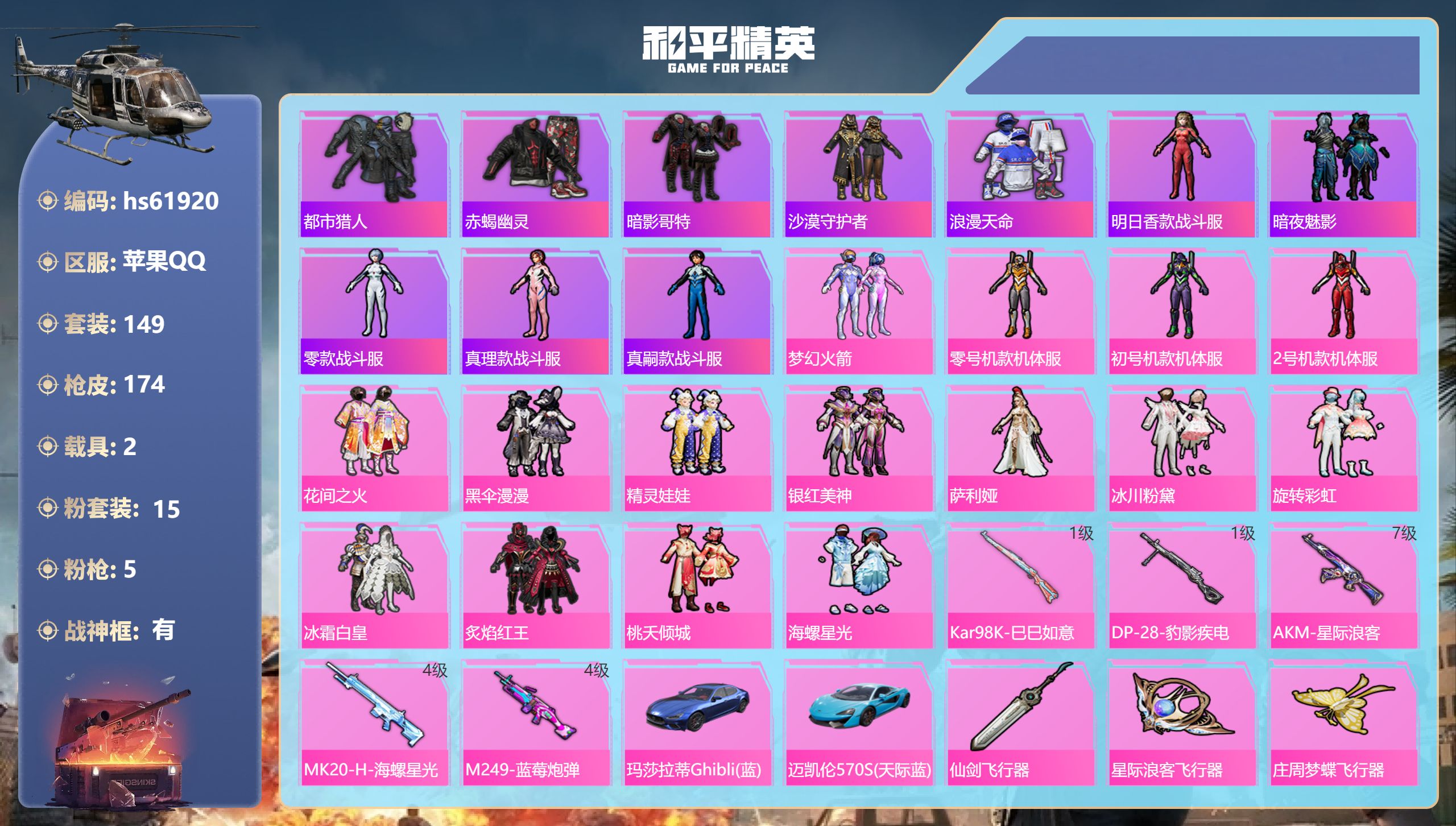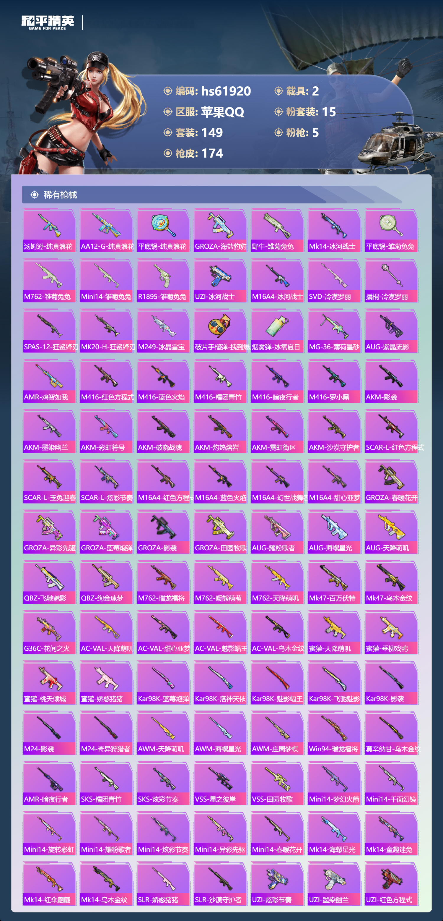 【483506】【可二次】【苹果QQ】AKM-星际浪客 漫步者 花间之火 都市猎人 炙焰红王 M24-奇异狩猎者 星际浪客飞行器 绮梦青鸾飞行器 赤蝎幽灵 罗小黑 梦起落英 庄周梦蝶飞行器 黄螳螂 瑞龙福将 沙漠守护者 浪漫天命 团圆交子 MK20-H-海螺星光 黑伞漫漫 M762-瑞龙福将 迈凯伦570S 天际蓝 玛莎拉蒂蓝色 精灵娃娃 梦幻火箭 M249-蓝莓炮弹 仙剑飞行器 紫螳螂 红螳螂