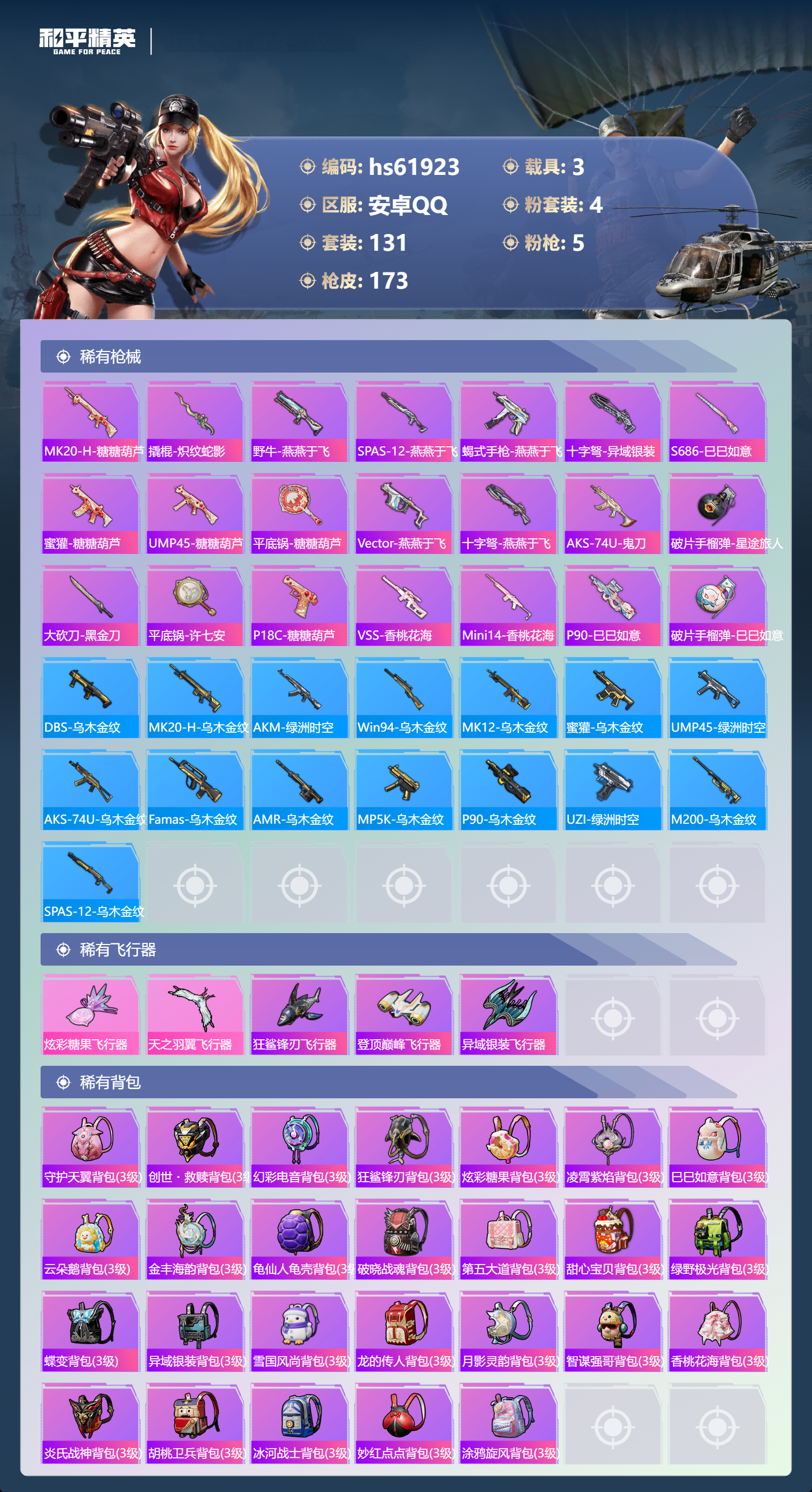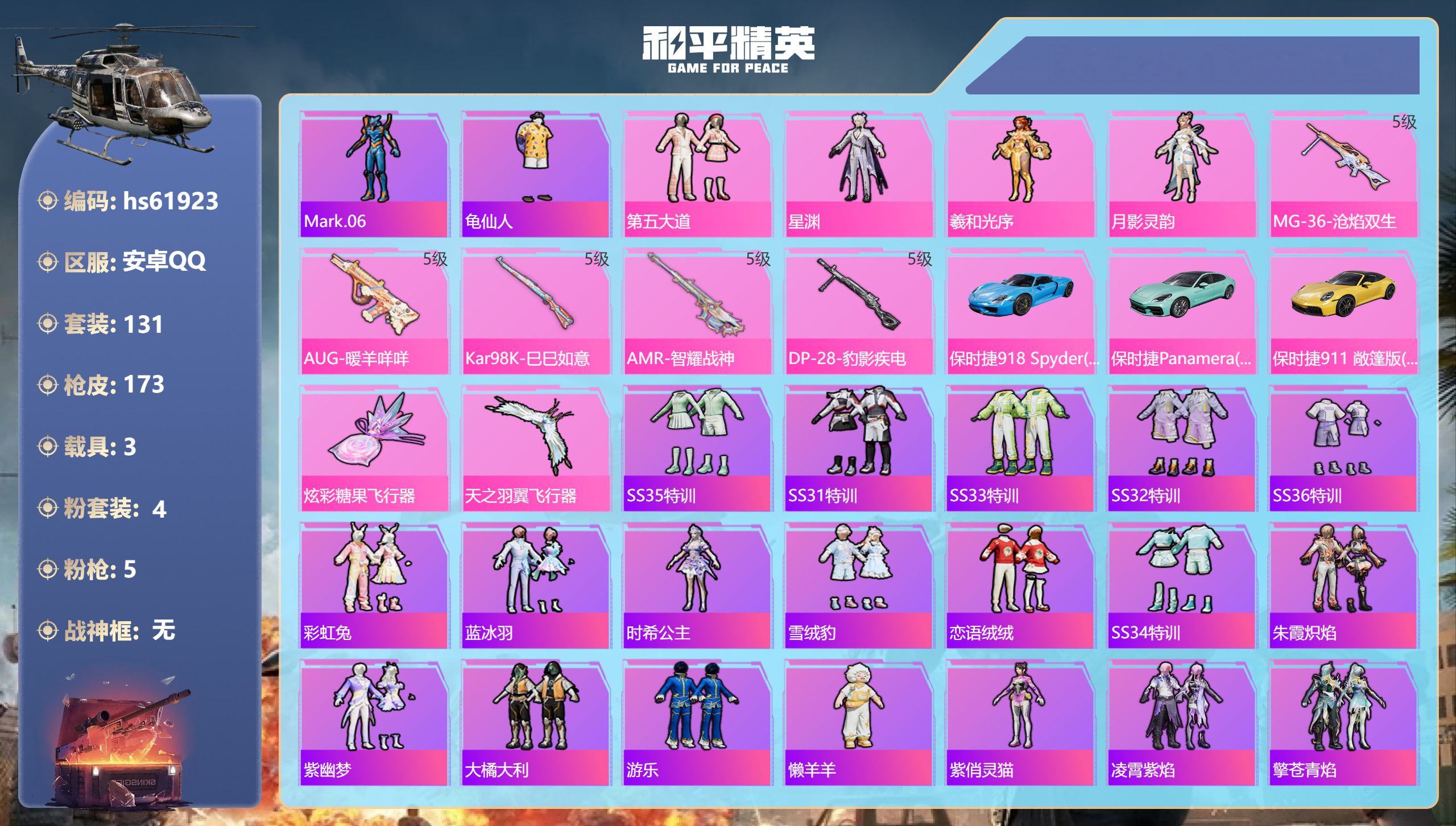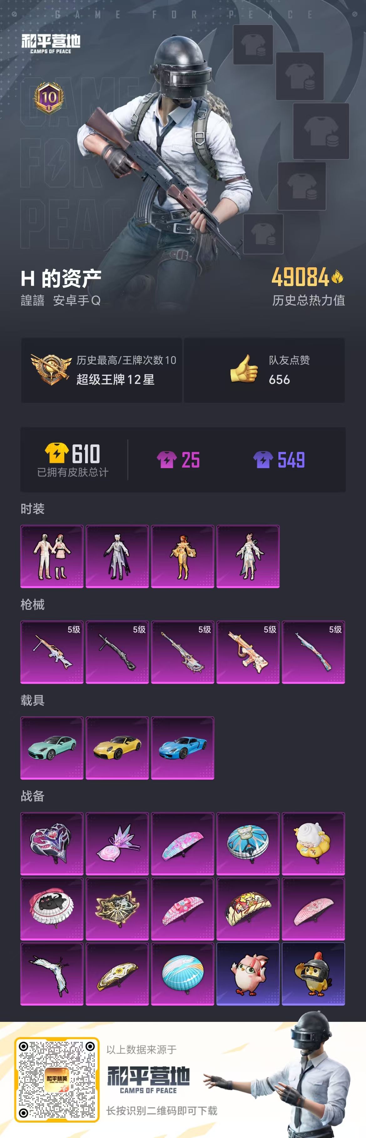 游戏区服:和平精英 / 安卓系统 / QQ账号