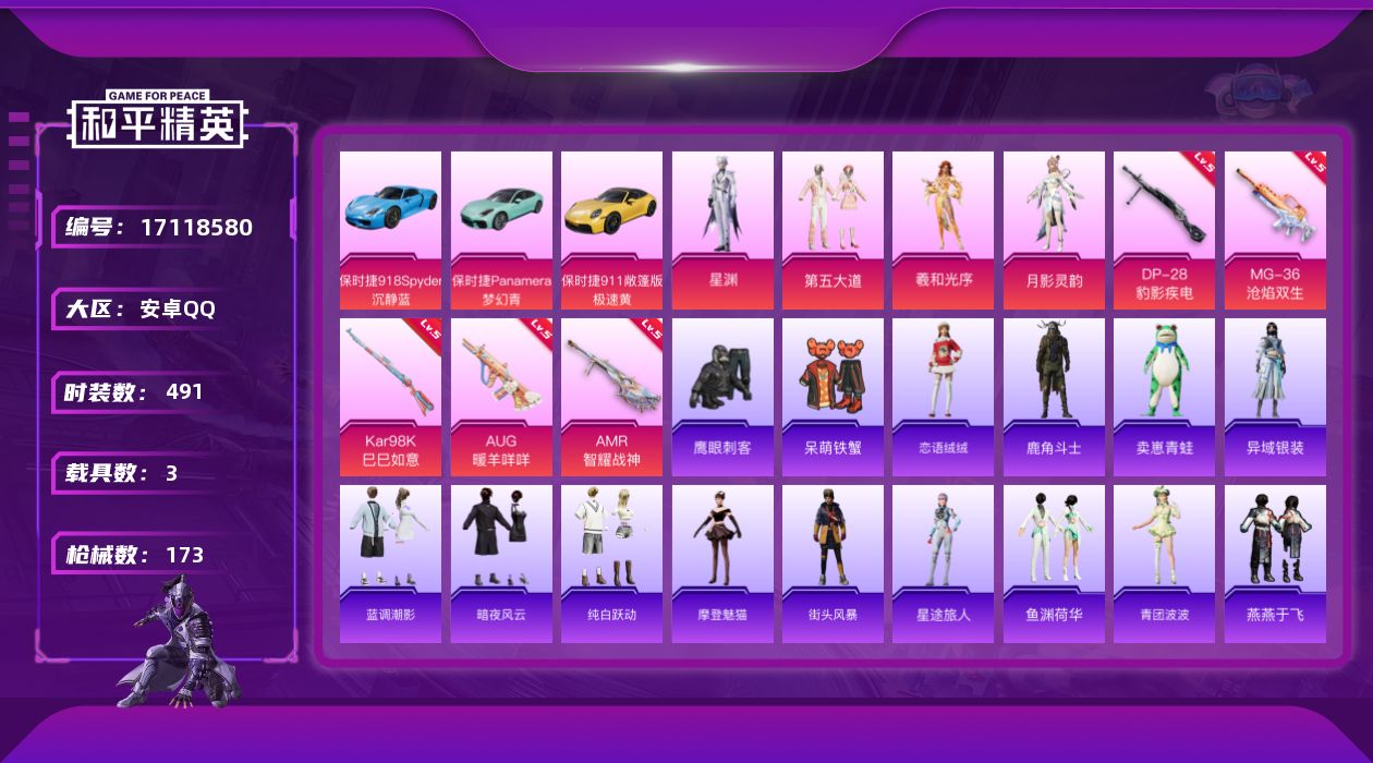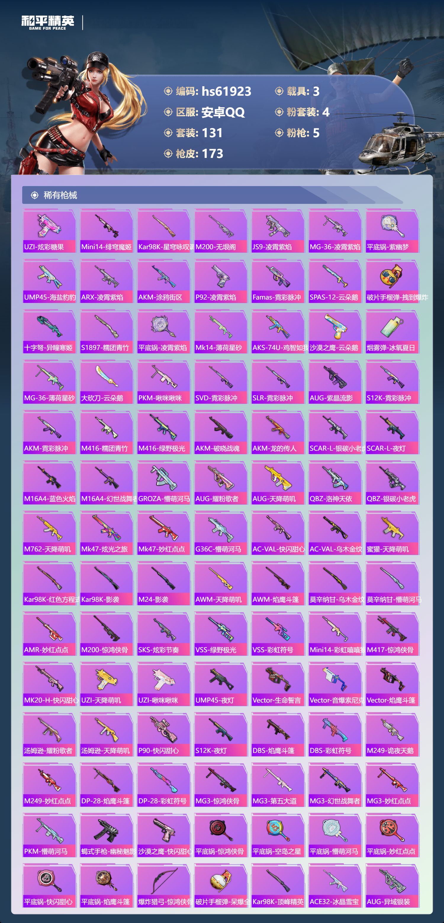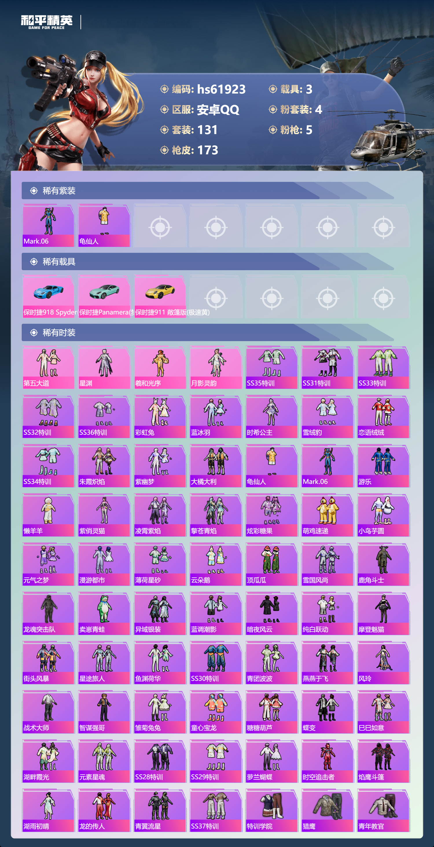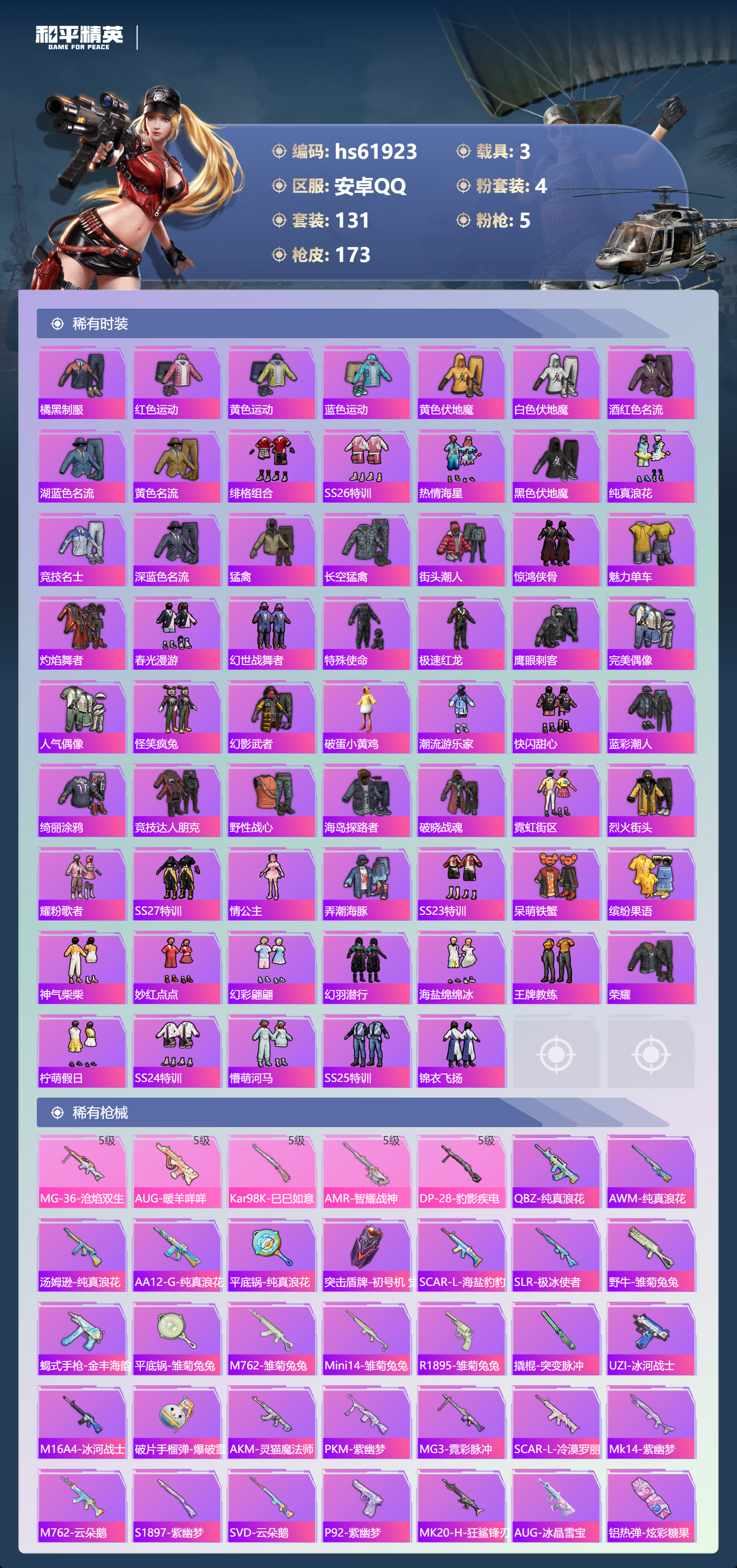 游戏区服:和平精英 / 安卓系统 / QQ账号