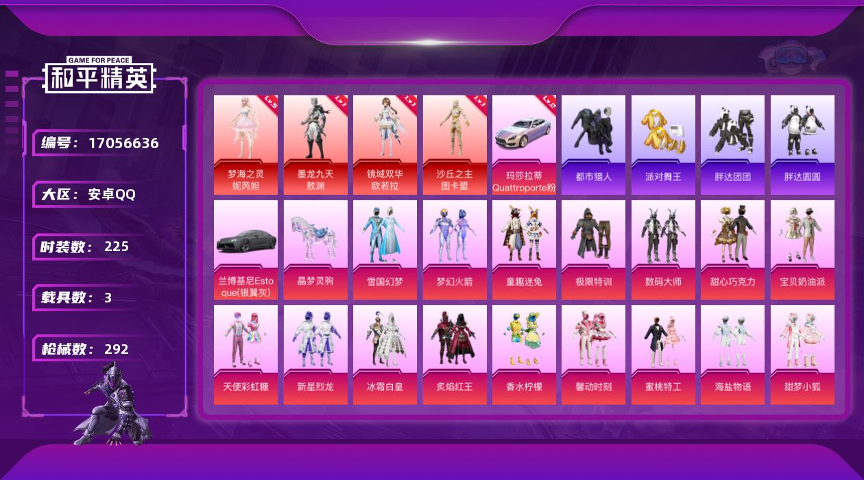 【483845】【可二次】【安卓QQ】雪国梦幻 新星烈龙 甜心巧克力 极限特训 兰博轿车灰色 M417射手步枪 玛莎拉蒂幻星粉 蜜桃特工 海盐物语 梦幻火箭 M416-心之恋语 天使彩虹糖 UMP45-相思残雪 数码大师 宝贝奶油派 馨动时刻 SCAR-童趣迷兔 激萌小黄鸭 SCAR-L-青春物语
