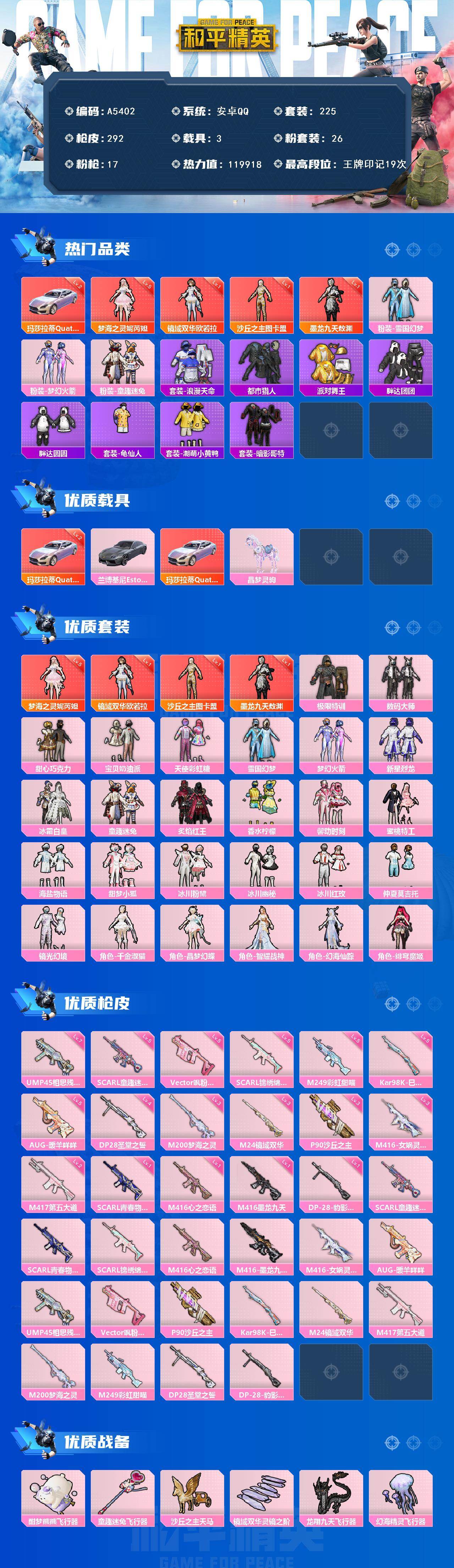 游戏区服:和平精英 / 安卓系统 / QQ账号