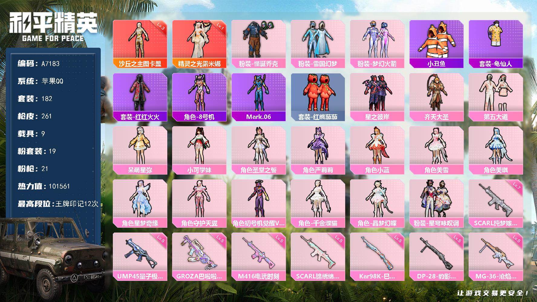 游戏区服:和平精英 / 苹果系统 / QQ帐号