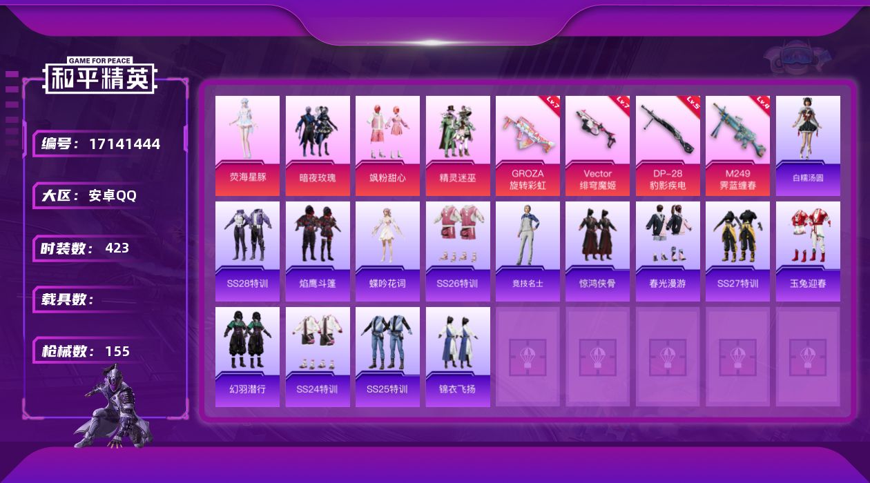 游戏区服:和平精英 / 安卓系统 / QQ账号