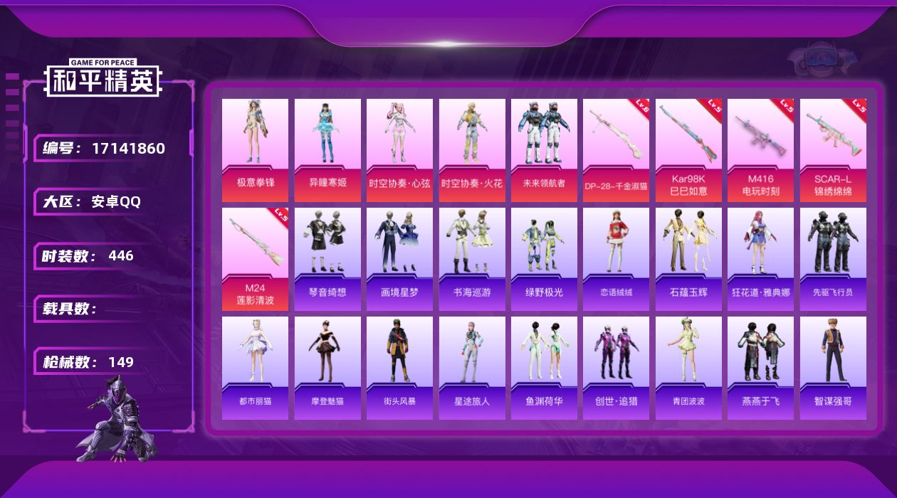 【487520】【可二次】【安卓QQ】M416-电玩时刻 SCAR-L-锦绣绵绵 时空协奏·火花 M24-莲影清波 粉红小猪 时空协奏·心弦