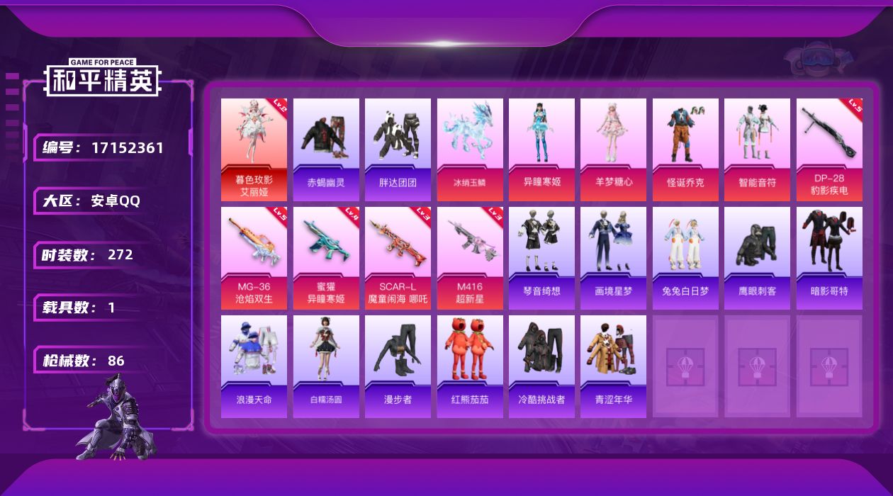 【488872】【不可二次】【安卓QQ】红熊茄茄 水银刺客 漫步者 怪诞乔克 智能音符 M416-超新星 浪漫天命 暗影哥特 胖达团团 赤蝎幽灵