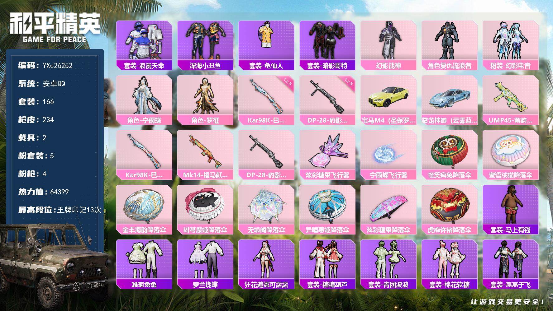 【489784】【可二次】【安卓QQ】龟仙人 怪笑疯兔降落伞 M24-奇异狩猎者 深海小丑鱼 幻影战神 极速红龙 浪漫天命 暗影哥特