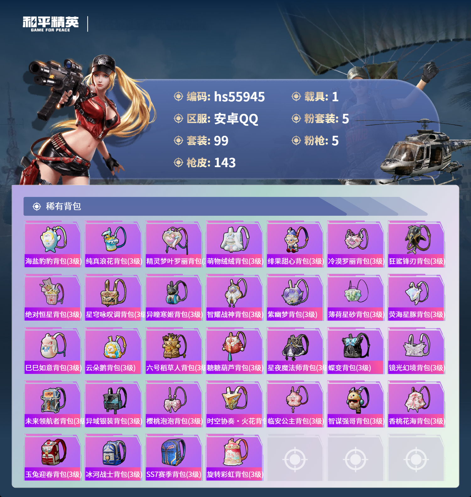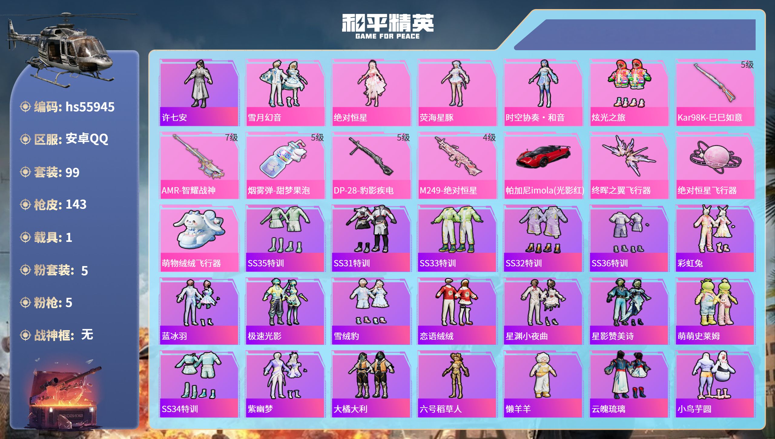 游戏区服:和平精英 / 安卓系统 / QQ账号