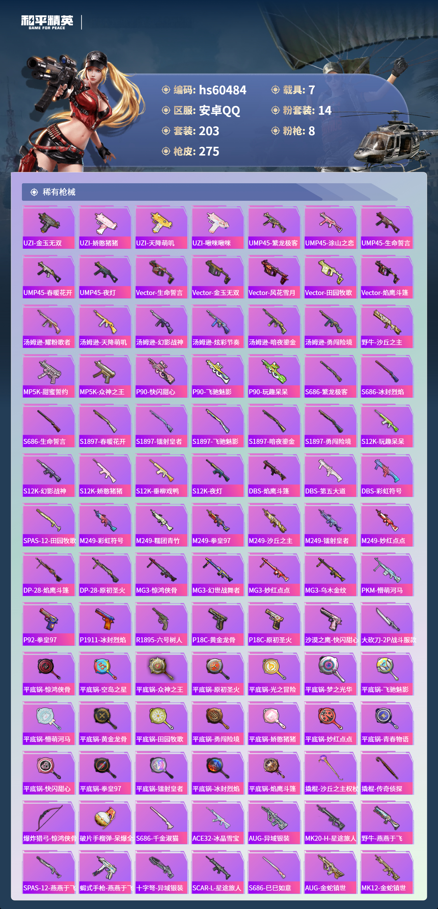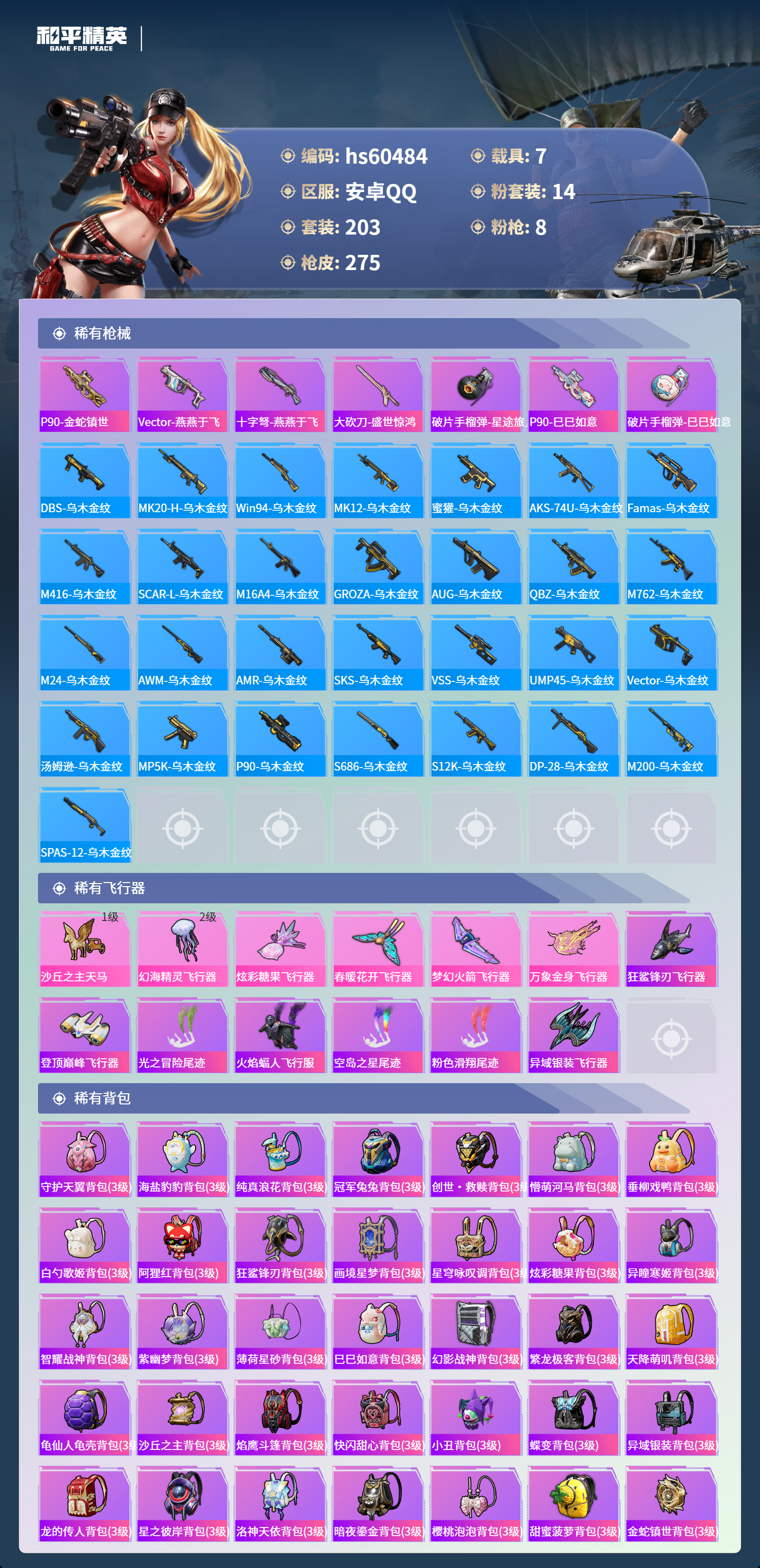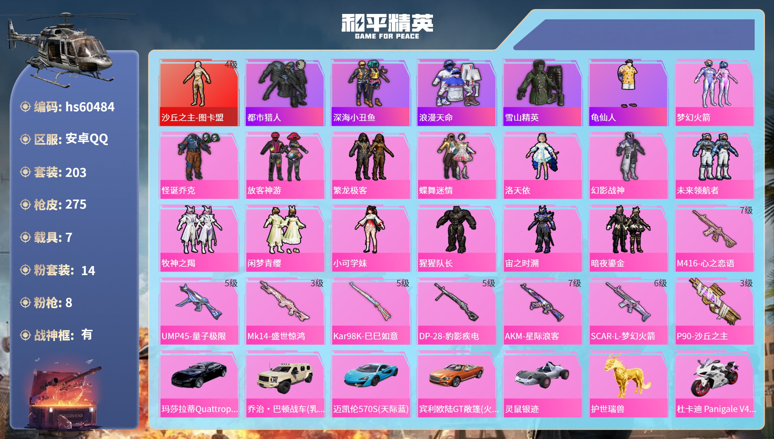 【491488】【不可二次】【安卓QQ】龟仙人 AKM-星际浪客 漫步者 P90-沙丘之主 都市猎人 灵鼠银迹 洛天依 豚鼠丹丹 沙丘之主-图卡盟 放客神游 UMP45-量子极限 恶魔人蛛 M416-心之恋语 深海小丑鱼 蝶舞迷情 浪漫天命 梦幻火箭飞行器 纯白誓言 SCAR-L-梦幻火箭 怪诞乔克 SCAR-L梦幻火箭 迈凯伦570S 天际蓝 春暖花开飞行器 乔治巴顿战车(黑) 繁龙极客 梦幻