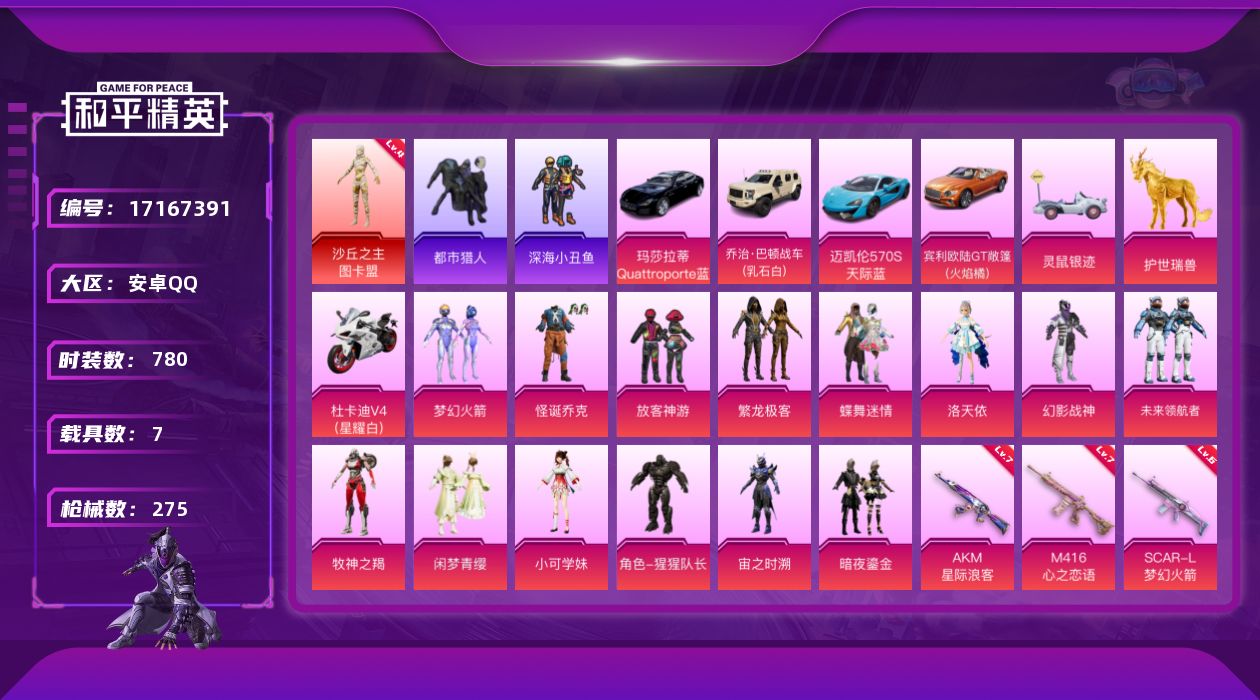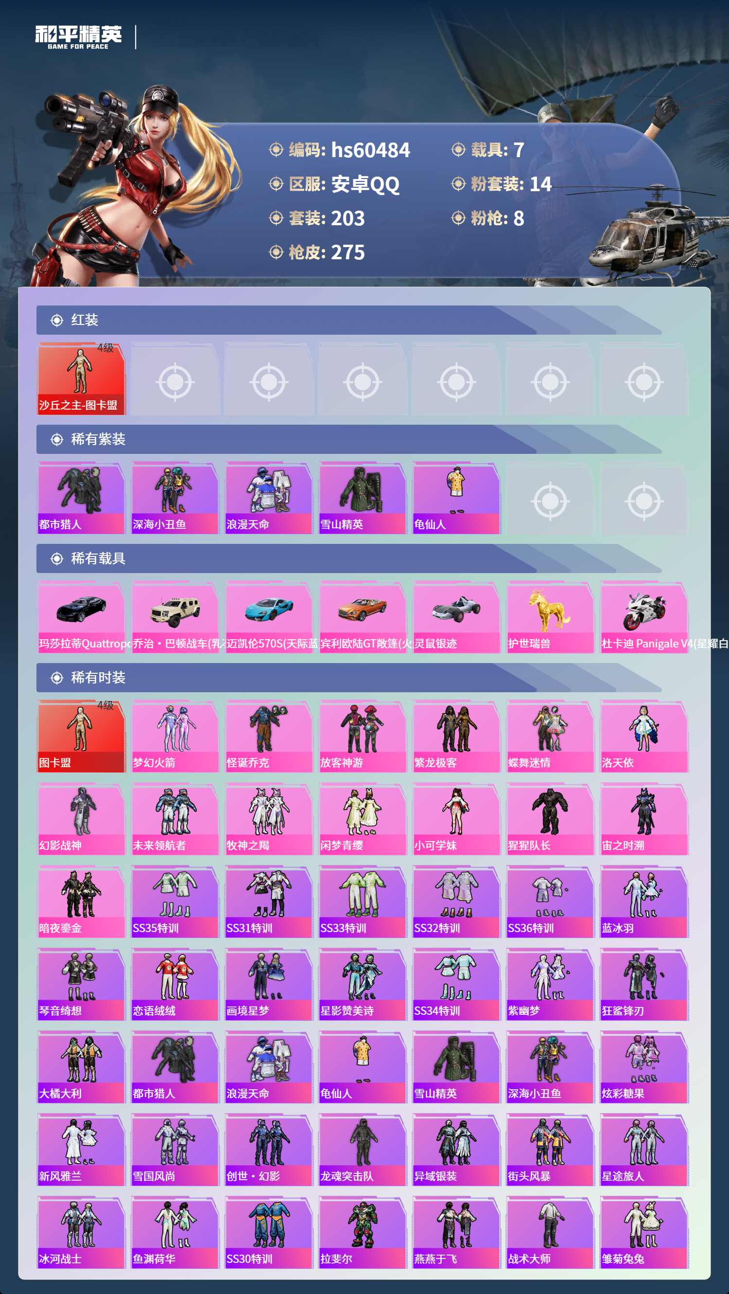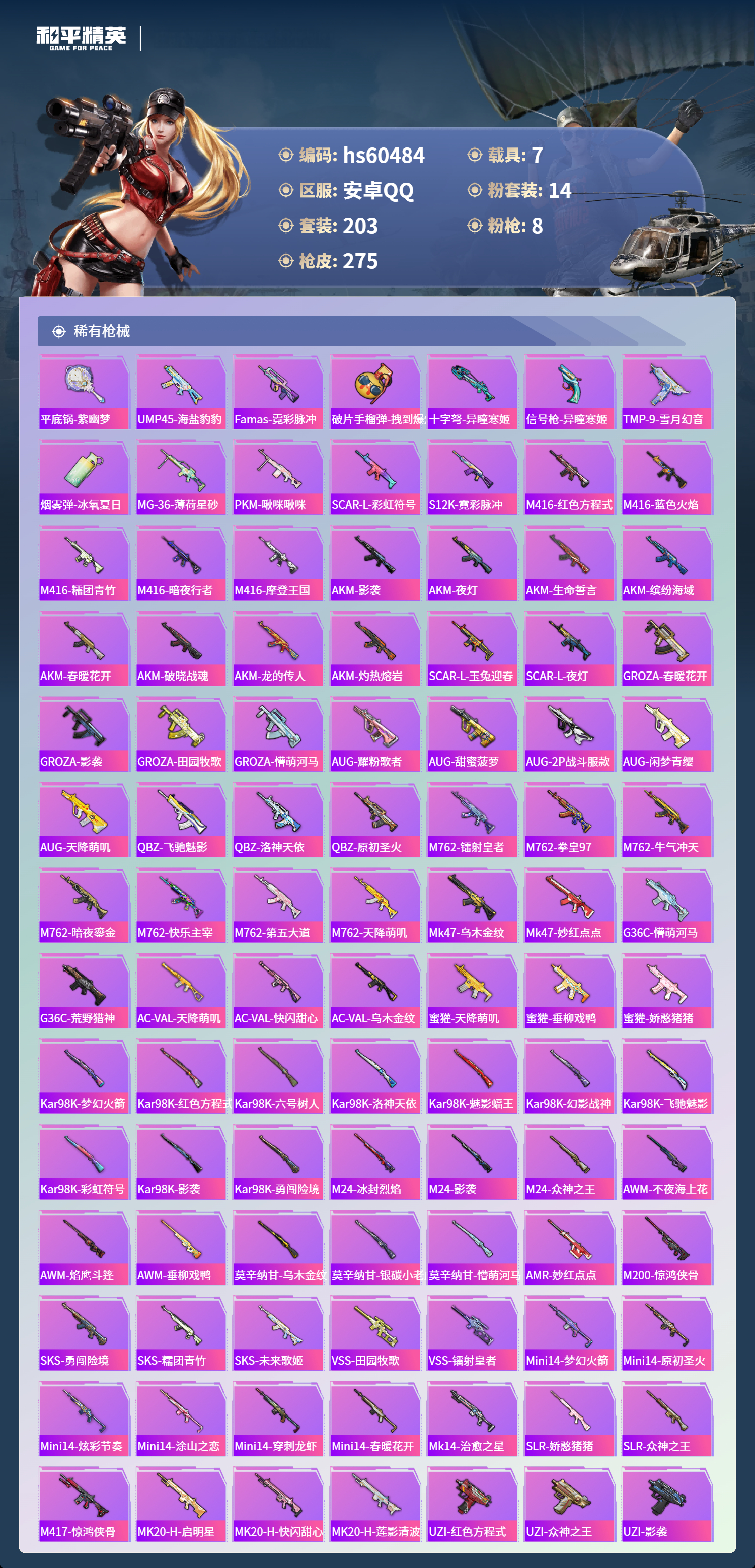 【491488】【不可二次】【安卓QQ】龟仙人 AKM-星际浪客 漫步者 P90-沙丘之主 都市猎人 灵鼠银迹 洛天依 豚鼠丹丹 沙丘之主-图卡盟 放客神游 UMP45-量子极限 恶魔人蛛 M416-心之恋语 深海小丑鱼 蝶舞迷情 浪漫天命 梦幻火箭飞行器 纯白誓言 SCAR-L-梦幻火箭 怪诞乔克 SCAR-L梦幻火箭 迈凯伦570S 天际蓝 春暖花开飞行器 乔治巴顿战车(黑) 繁龙极客 梦幻