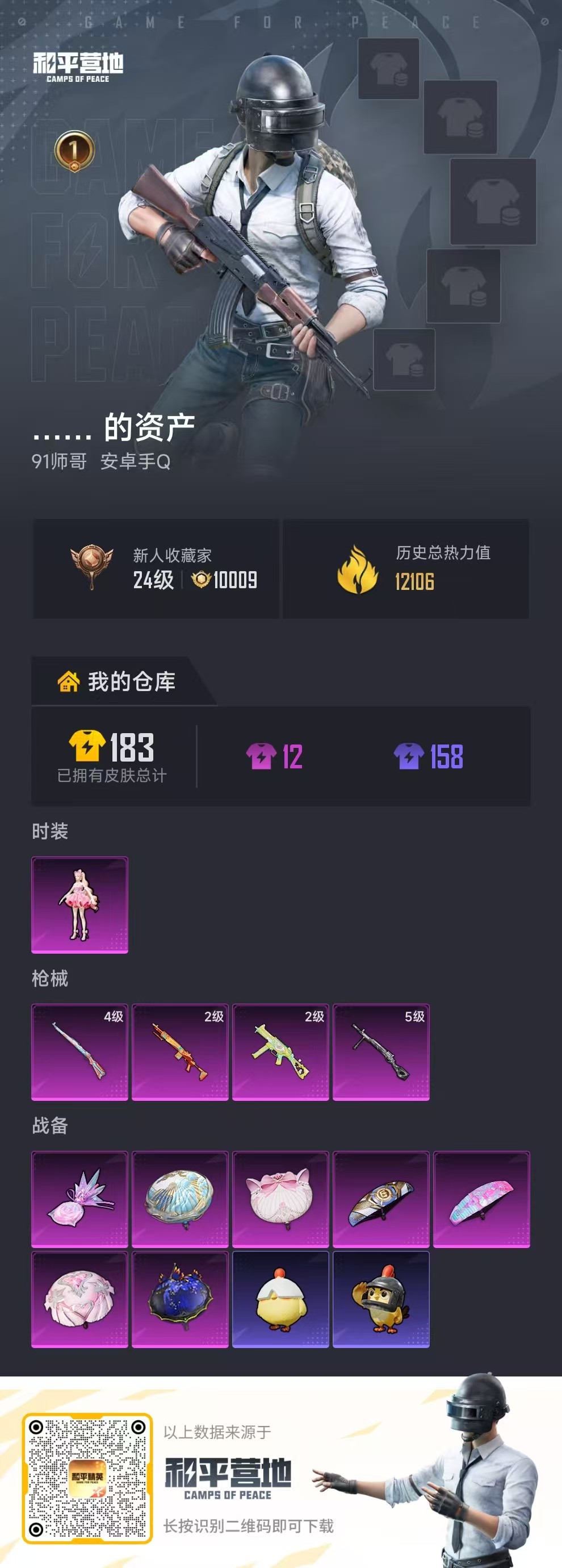游戏区服:和平精英 / 安卓系统 / QQ账号