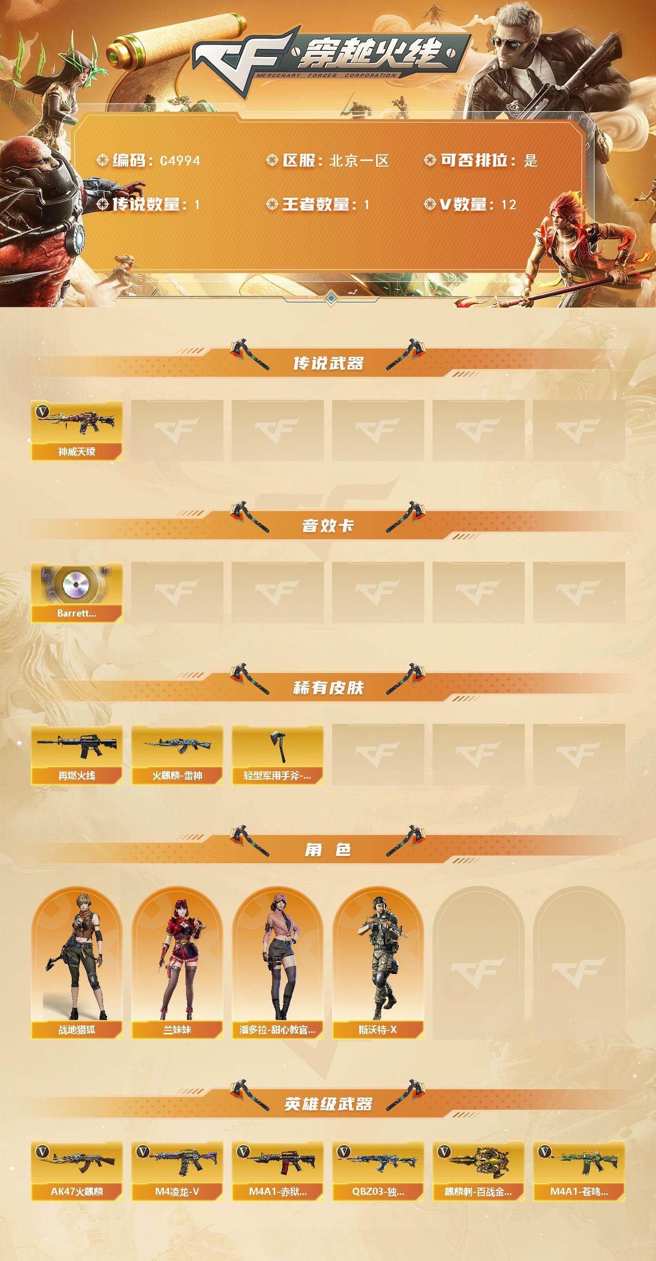 【493612】【493612】[17181647]北京一区-11V-1王者武器数-0炫金武器数【传说武器】:神威天绫【音效卡】:Barrett-碧霄极光音效
