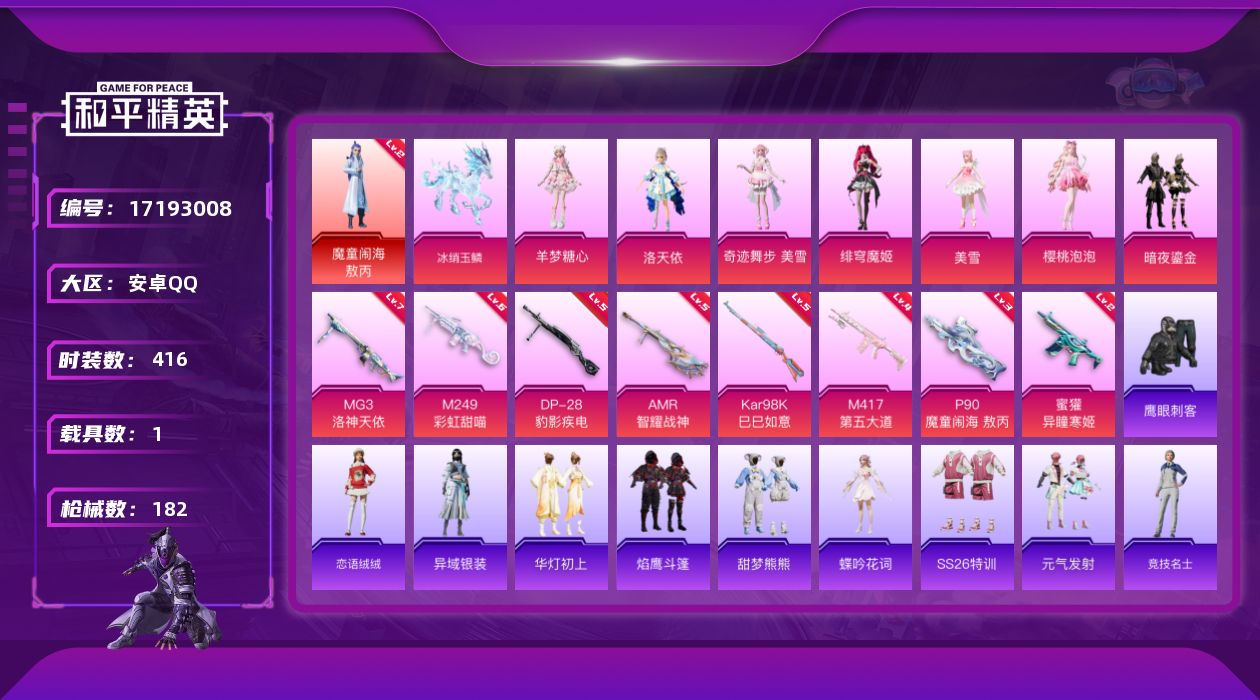 【495351】【不可二次】【安卓QQ】龟仙人 魔童闹海-敖丙 M249-彩虹甜喵 MG3-洛神天依 洛天依 M417射手步枪 M417-第五大道