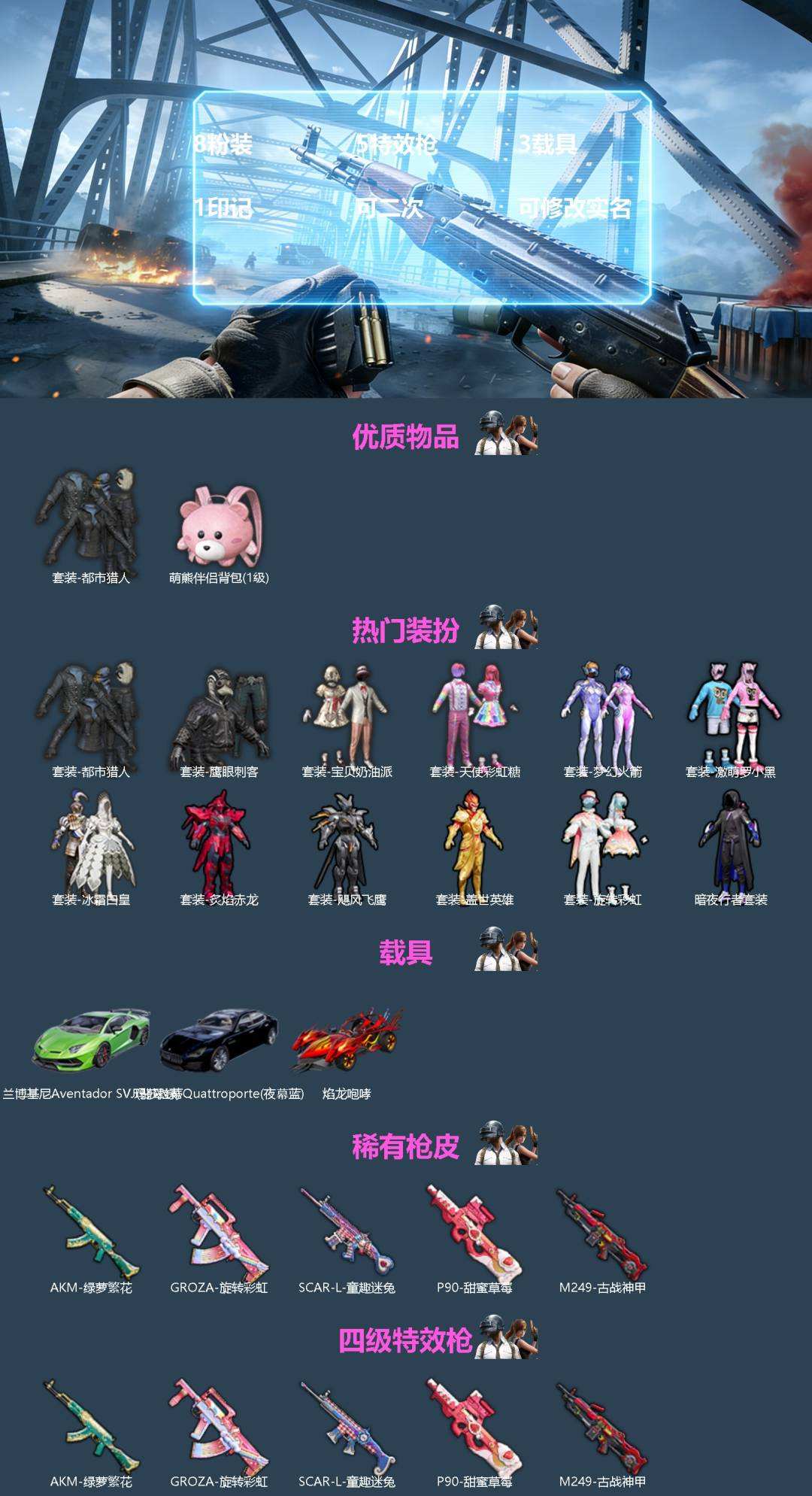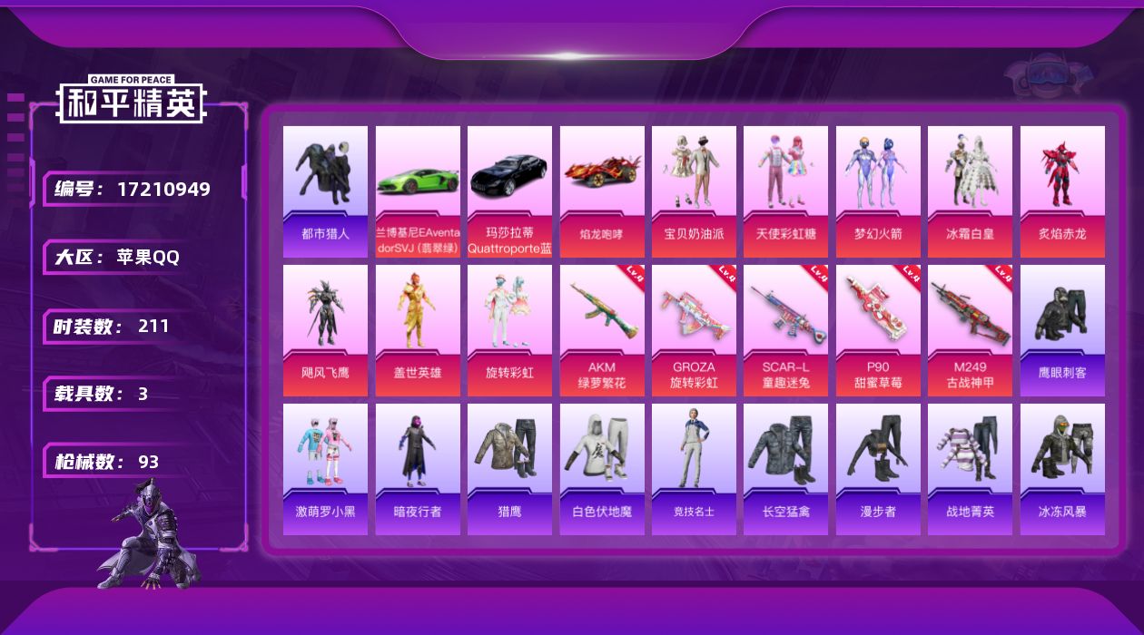 【497570】【可二次】【苹果QQ】兰博SVJ绿色 梦幻火箭降落伞 焰龙咆哮 飓风飞鹰 炙焰赤龙 漫步者 盖世英雄 狂沙舞者 萌物绒绒飞行器 梦幻火箭 天使彩虹糖 甜心宝贝降落伞 宝贝奶油派 SCAR-童趣迷兔 瑞龙福将 冰霜白皇 雪山精英 M249-古战神甲 激萌罗小黑 团圆交子