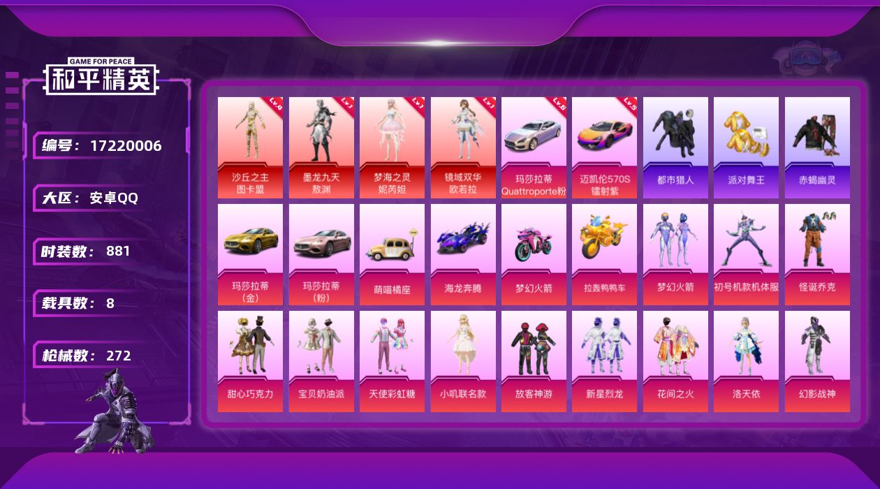 【498617】【不可二次】【安卓QQ】龟仙人 MK14-精灵梦叶罗丽 双人摩托梦幻火箭 水银刺客 金曜白虎 漫步者 拂晓神骑飞行器 花间之火 都市猎人 海龙奔腾 忍者信条 沙丘之主-图卡盟 MK47-林间仙鹿 馨动时刻 SCAR-童趣迷兔 迈凯伦570S 紫色 纯白誓言 M24-镜域双华 怪诞乔克 梦海之灵-妮芮妲 龙翔九天飞行器 音爆索尼克 AKM-炫紫旋律 幻海精灵飞行器 拉轰鸭鸭车 M2