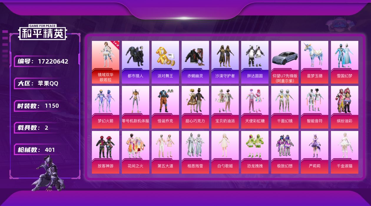 【498838】【可二次】【苹果QQ】龟仙人 恐龙拽拽 UZI-绮梦青鸾 漫步者 花间之火 都市猎人 金属狂野 梦起落英 海盐物语 M416-暖熊萌萌 M416-心之恋语 缤纷油彩 黄螳螂 浪漫波比 SCAR-童趣迷兔 智能音符 AUG-星之彼岸 Kar98K-伏魔团 MG3-梦幻舞会 AKM-甜心宝贝 纯白誓言 M24-镜域双华 怪诞乔克 迷蝶贵族 迅捷狂鲨 M762-瑞龙福将 潮萌小黄鸭 黑