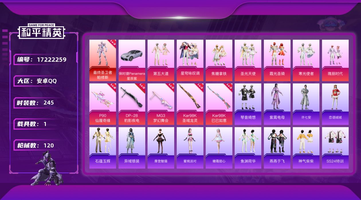 【499071】【可二次】【安卓QQ】龟仙人 焦糖拿铁 P90-仙履奇缘 圣光天使飞行器 MG3-梦幻舞会 最终圣卫者-帕修斯