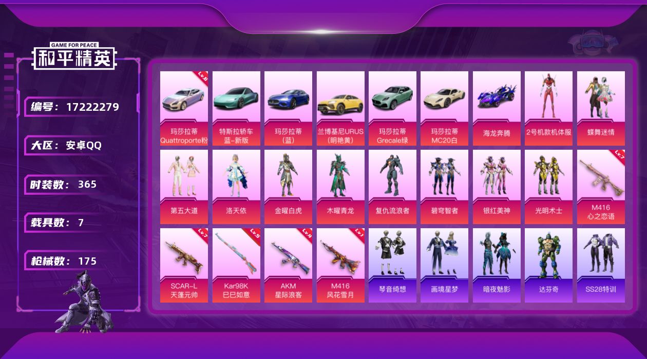 【499074】【不可二次】【安卓QQ】龟仙人 木曜青龙 AKM-星际浪客 金曜白虎 M762-瑞龙福将 木耀青龙 海龙奔腾 洛天依 兰博SUV黄色 春暖花开飞行器 汤姆逊-林间仙鹿 玛莎拉蒂幻星粉 玛莎拉蒂蓝色 M416-风花雪月 SCAR-L-天蓬元帅 M416-心之恋语 金耀白虎 瑞龙福将 蝶舞迷情 特斯拉R水滴蓝 红螳螂 Vector-风花雪月 团圆交子