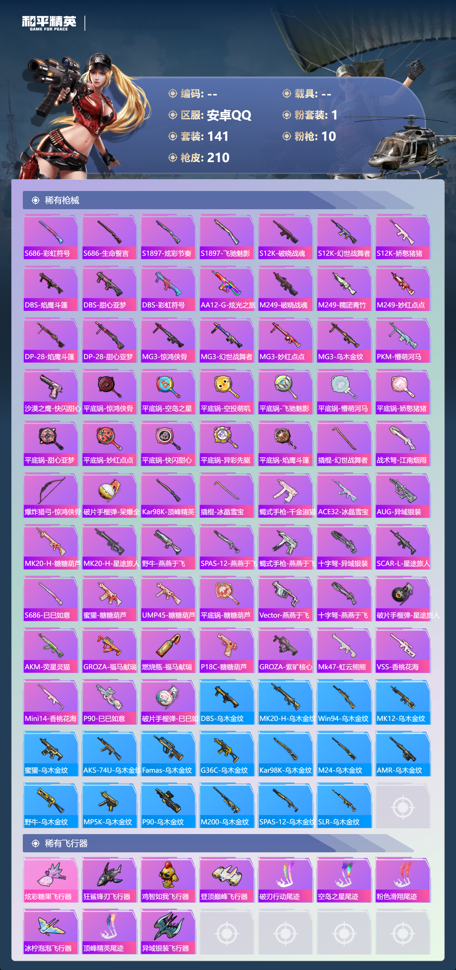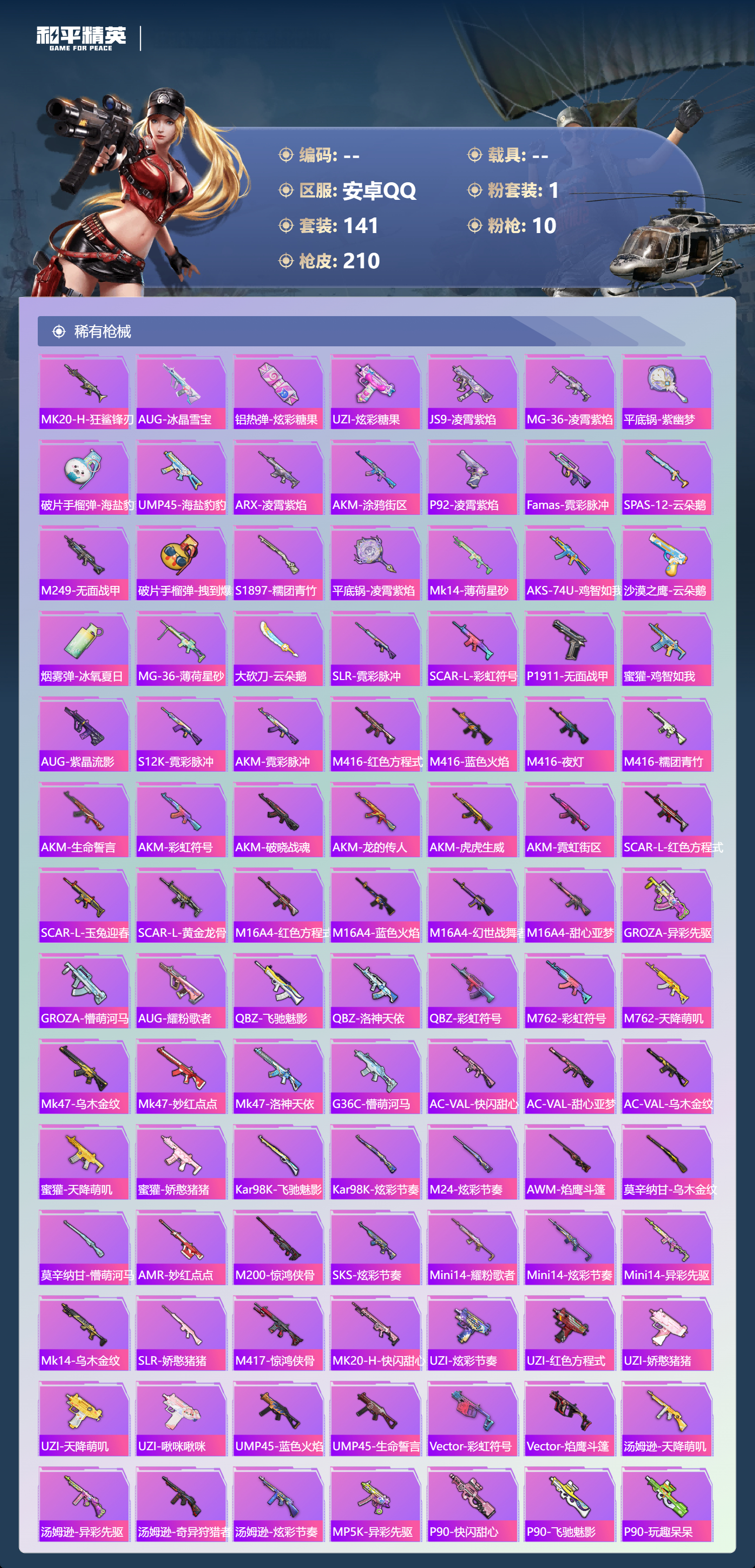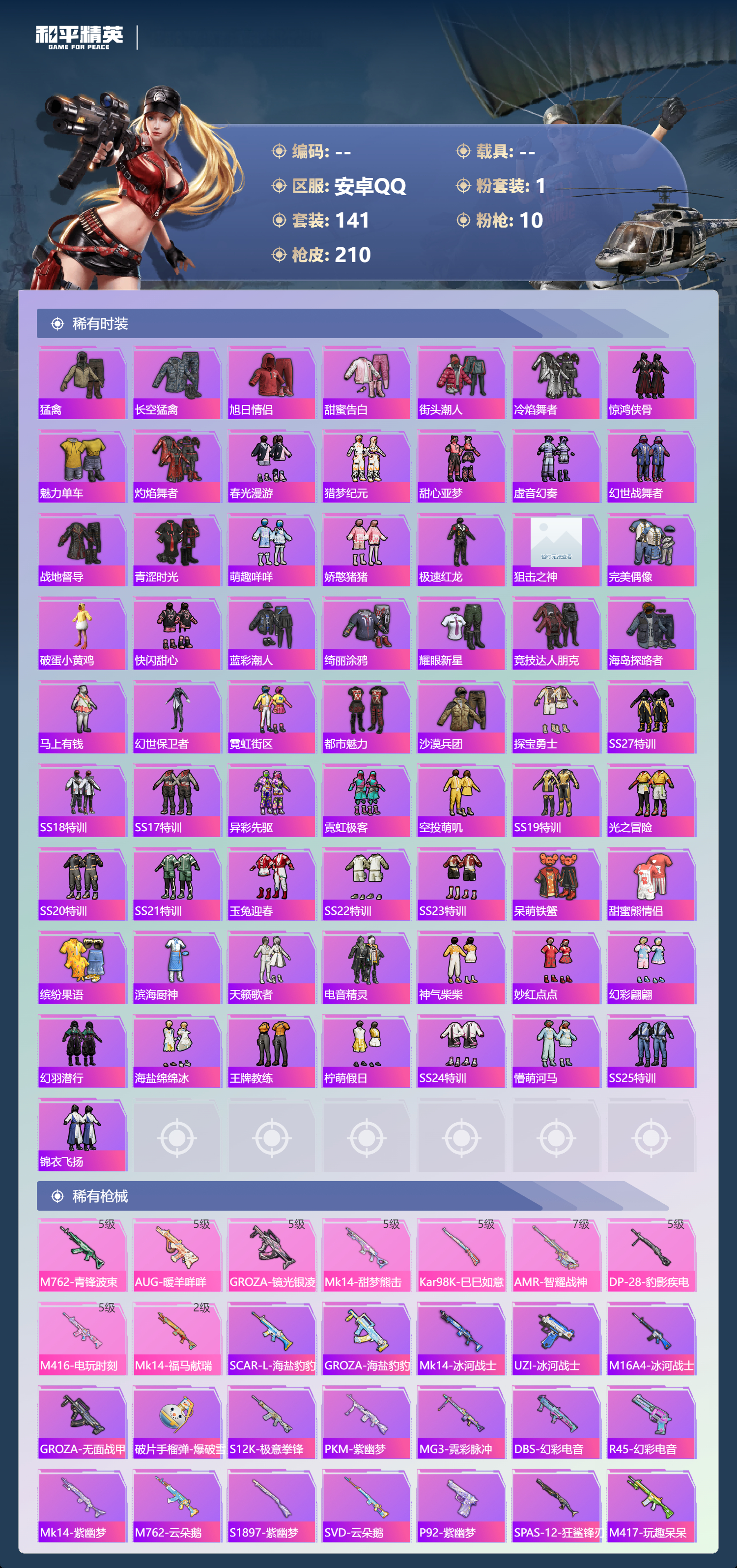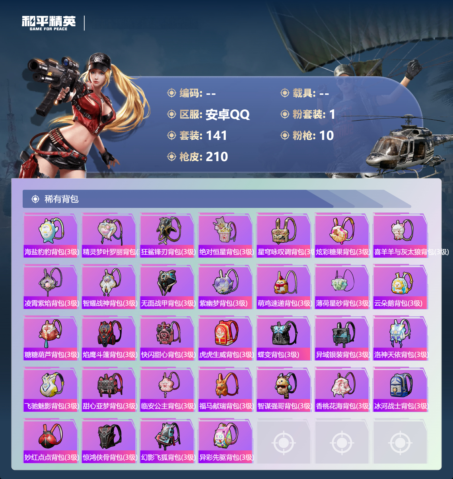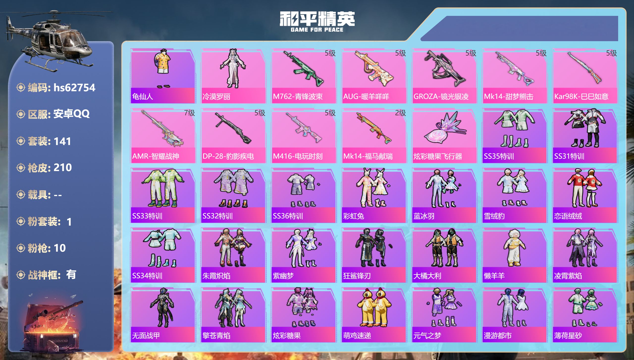 游戏区服:和平精英 / 安卓系统 / QQ账号