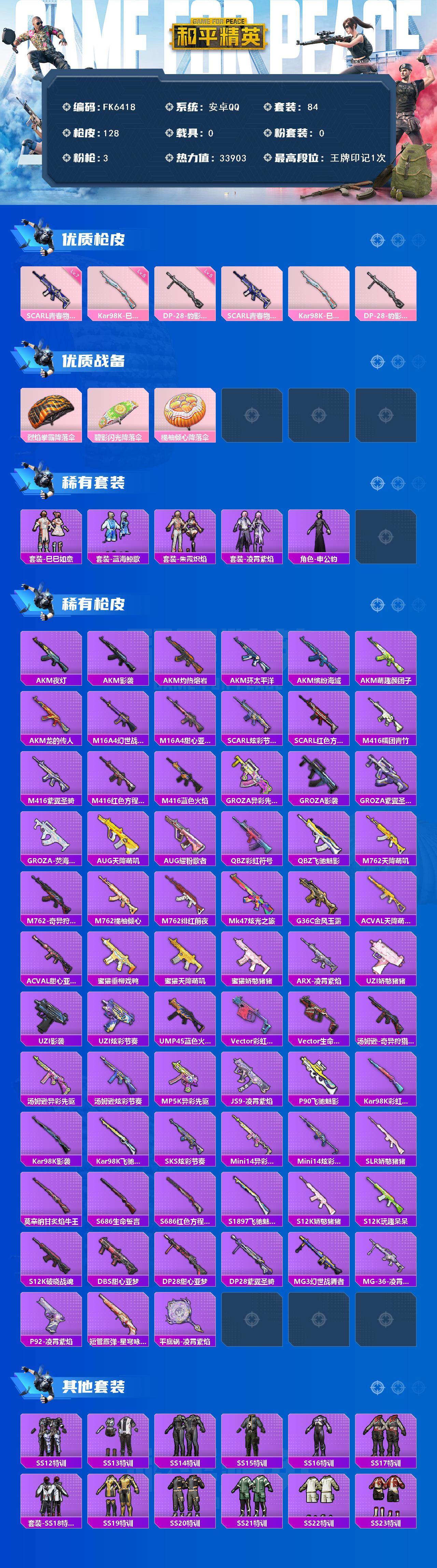 游戏区服:和平精英 / 安卓系统 / QQ账号