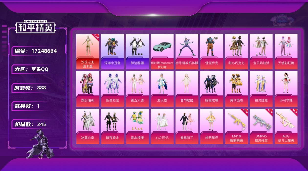 【502091】【不可二次】【苹果QQ】龟仙人 AKM-绿萝繁花 漫步者 M416-星际漫游 AKM-白勺歌姬 M762-奇异狩猎者 沙丘之主-图卡盟 M416-暖熊萌萌 缤纷油彩 深海小丑鱼 AKM-奇异狩猎者 怪诞乔克 迅捷狂鲨 M762-瑞龙福将 潮萌小黄鸭 狂沙舞者 SCAR-L-锦绣绵绵 香水柠檬 暗夜玫瑰 UMP45-相思残雪 黄伞悠悠 神秘黑猫 S686-奇异狩猎者 P90-沙丘之