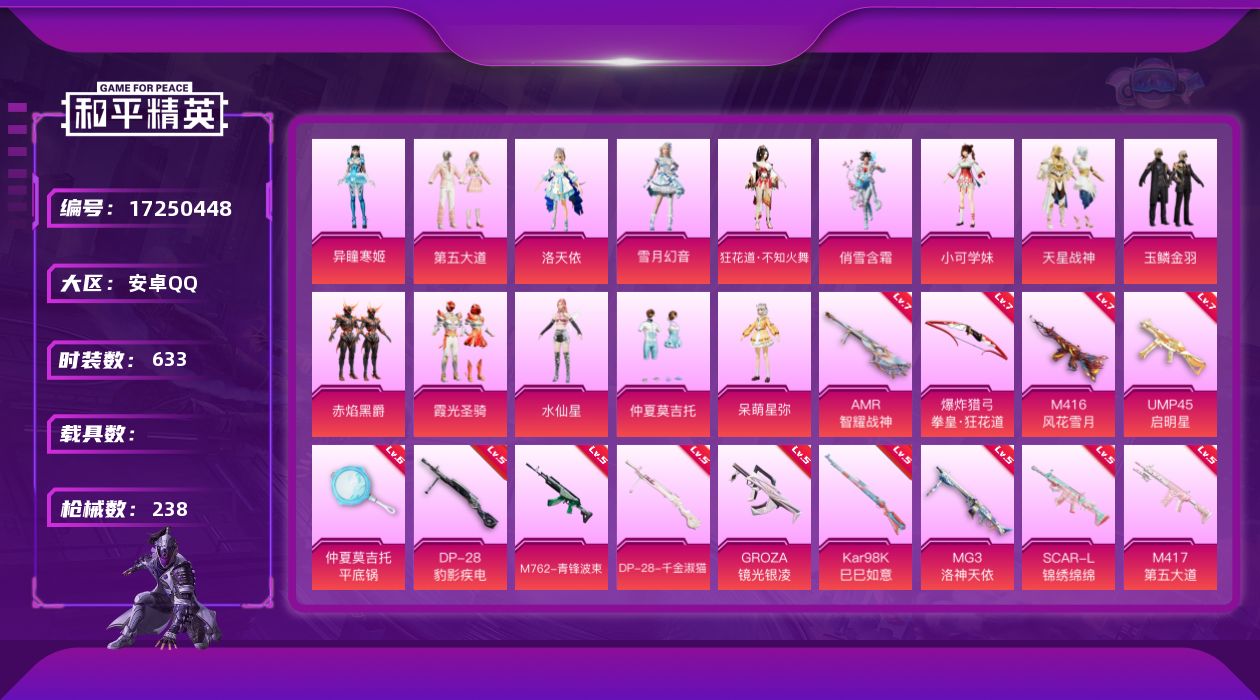 【502816】【可二次】【安卓QQ】龟仙人 AKM-绿萝繁花 俏雪含霜 M762-青锋波束 UMP45-启明星 MG3-洛神天依 洛天依 M417射手步枪 平底锅-仲夏莫吉托 豚鼠丹丹 SCAR-L-锦绣绵绵 赤焰黑爵 M416-风花雪月 浪漫假日 星夜魔法师飞行翼 绝色倾城飞行器 M417-第五大道 雪山精英