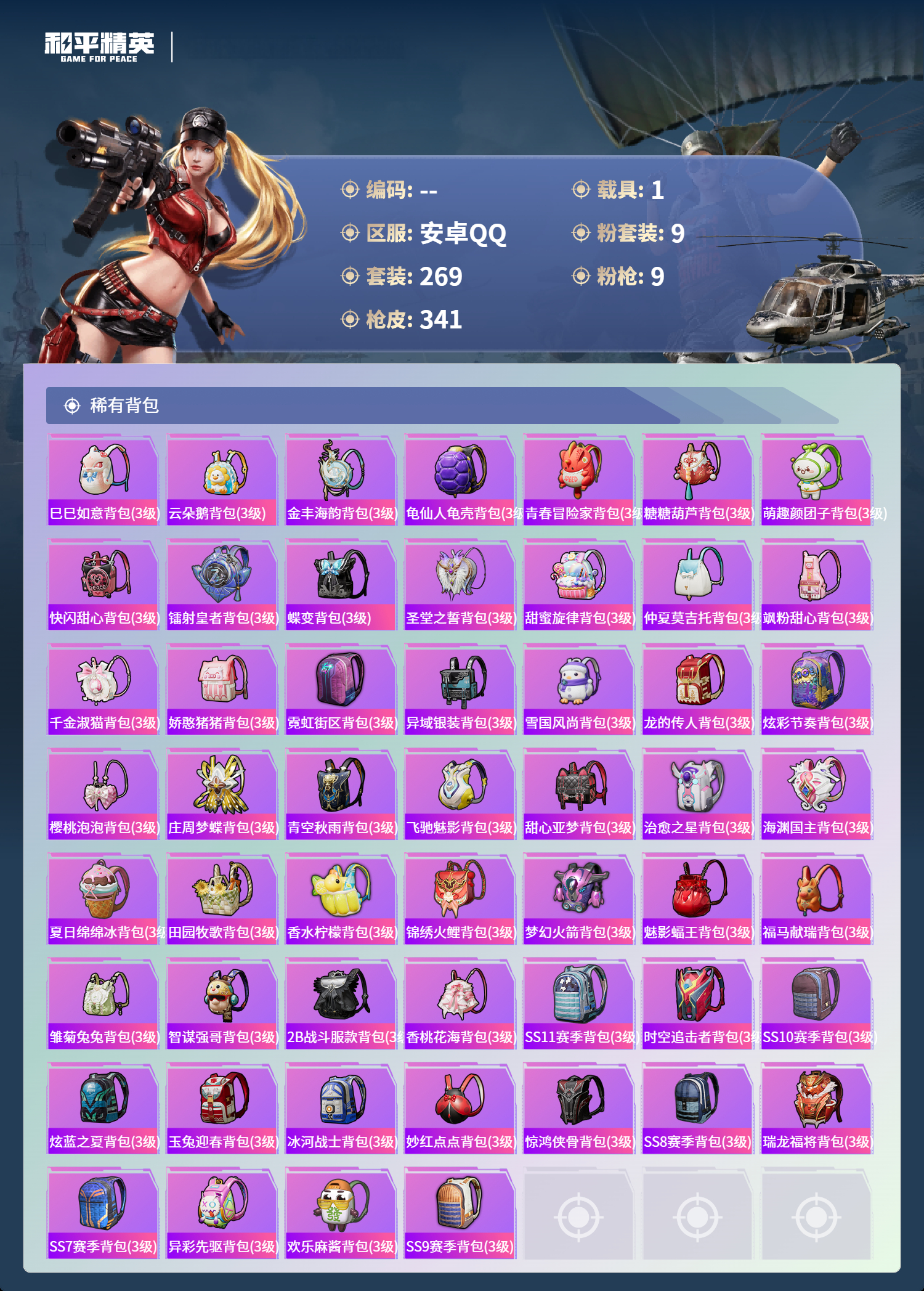 游戏区服:和平精英 / 安卓系统 / QQ账号