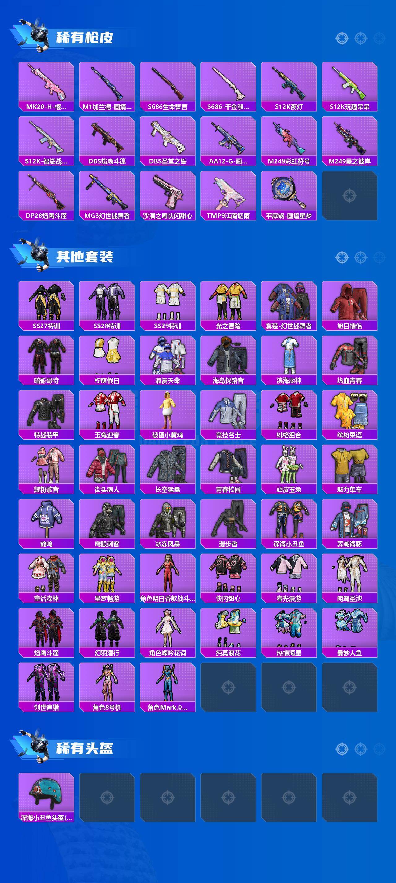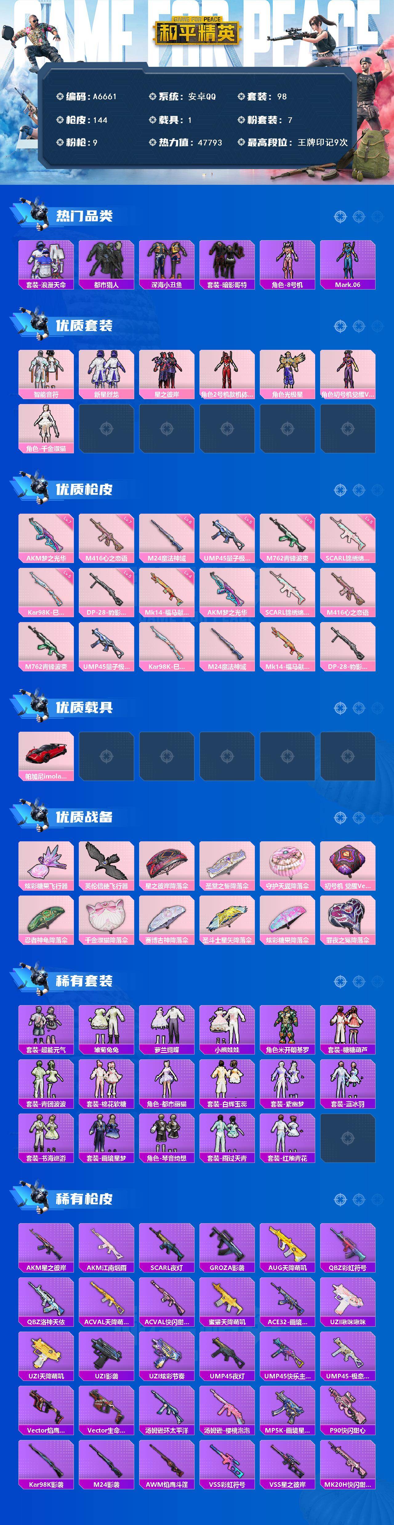【503598】【可二次】【安卓QQ】漫步者 都市猎人 新星烈龙 星之彼岸降落伞 明日香 星之彼岸 AKM-梦之光华 M416-心之恋语 童话森林 深海小丑鱼 智能音符 浪漫天命 暗影哥特