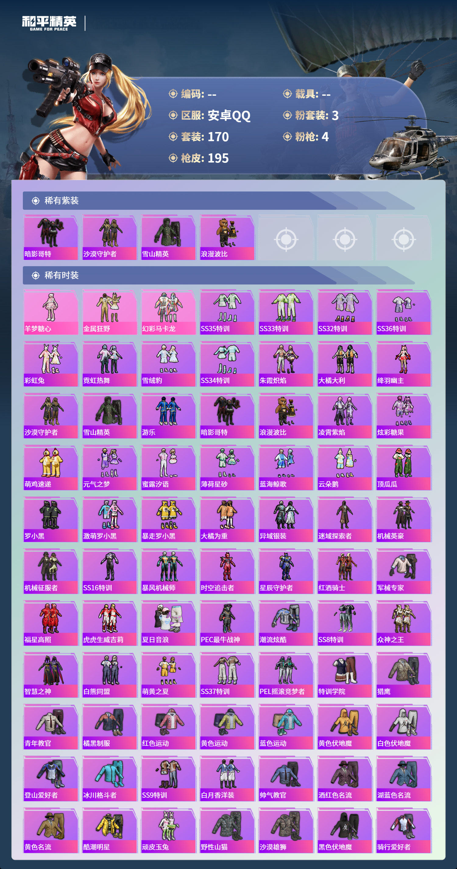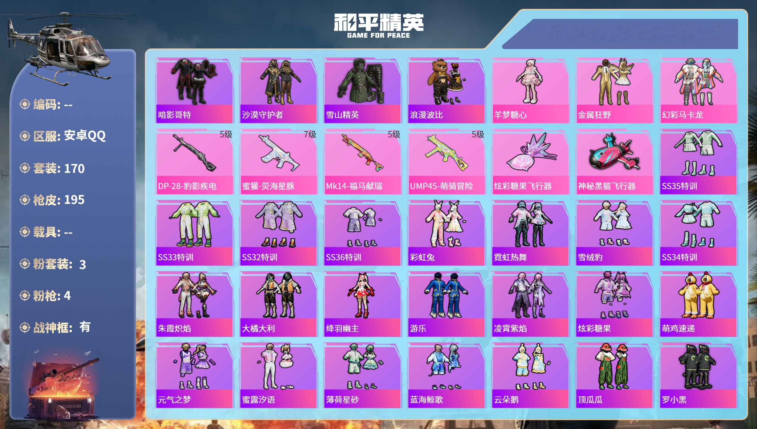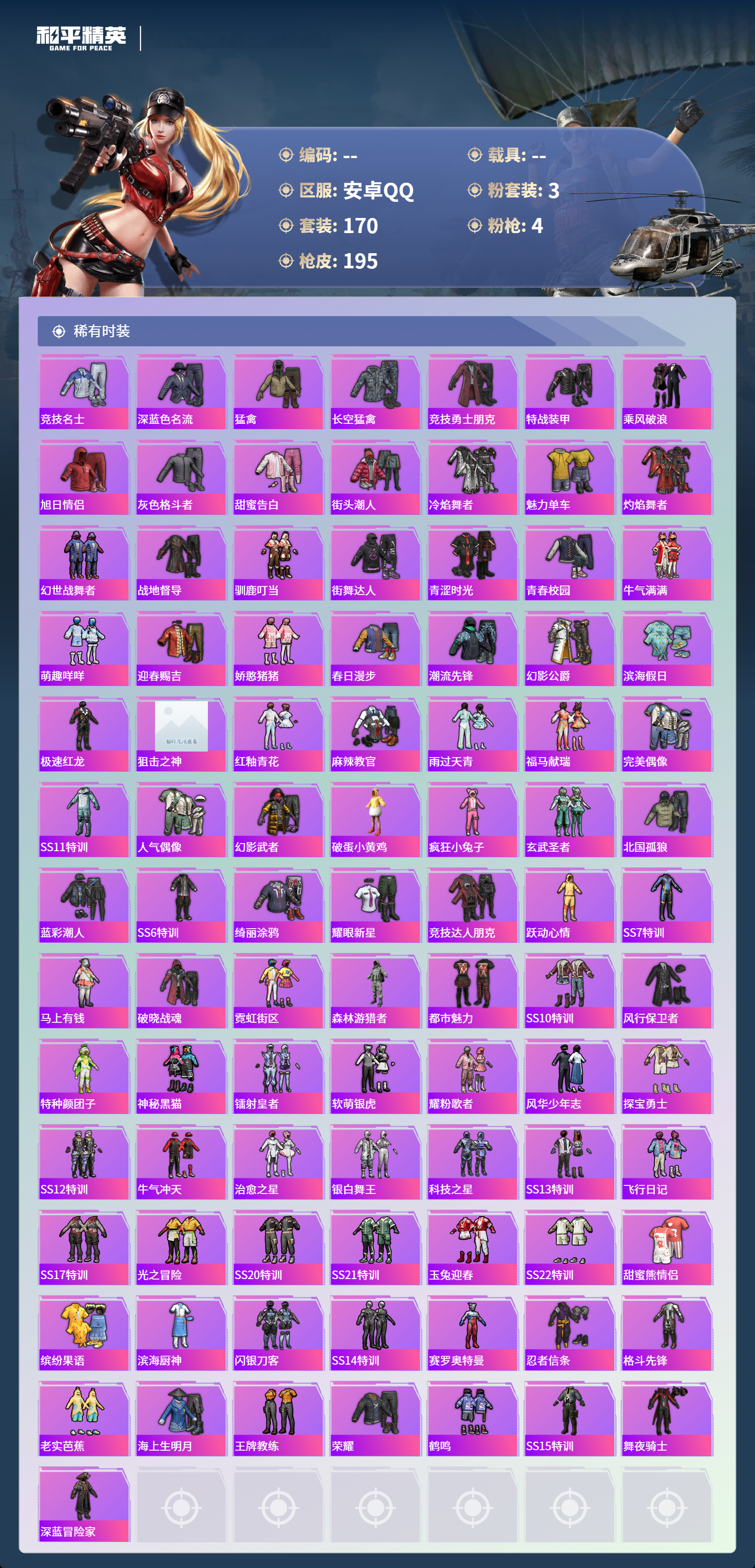 游戏区服:和平精英 / 安卓系统 / QQ账号