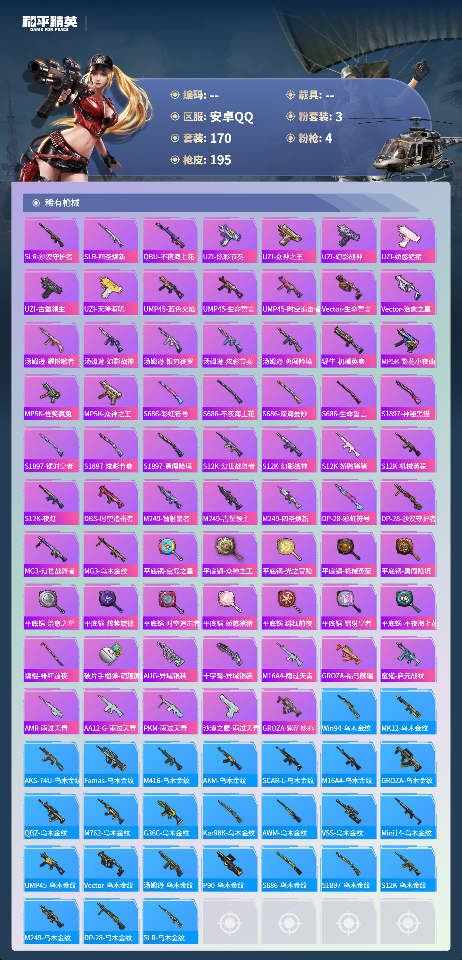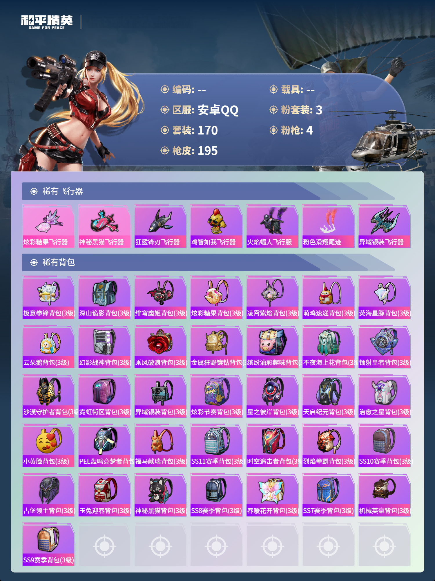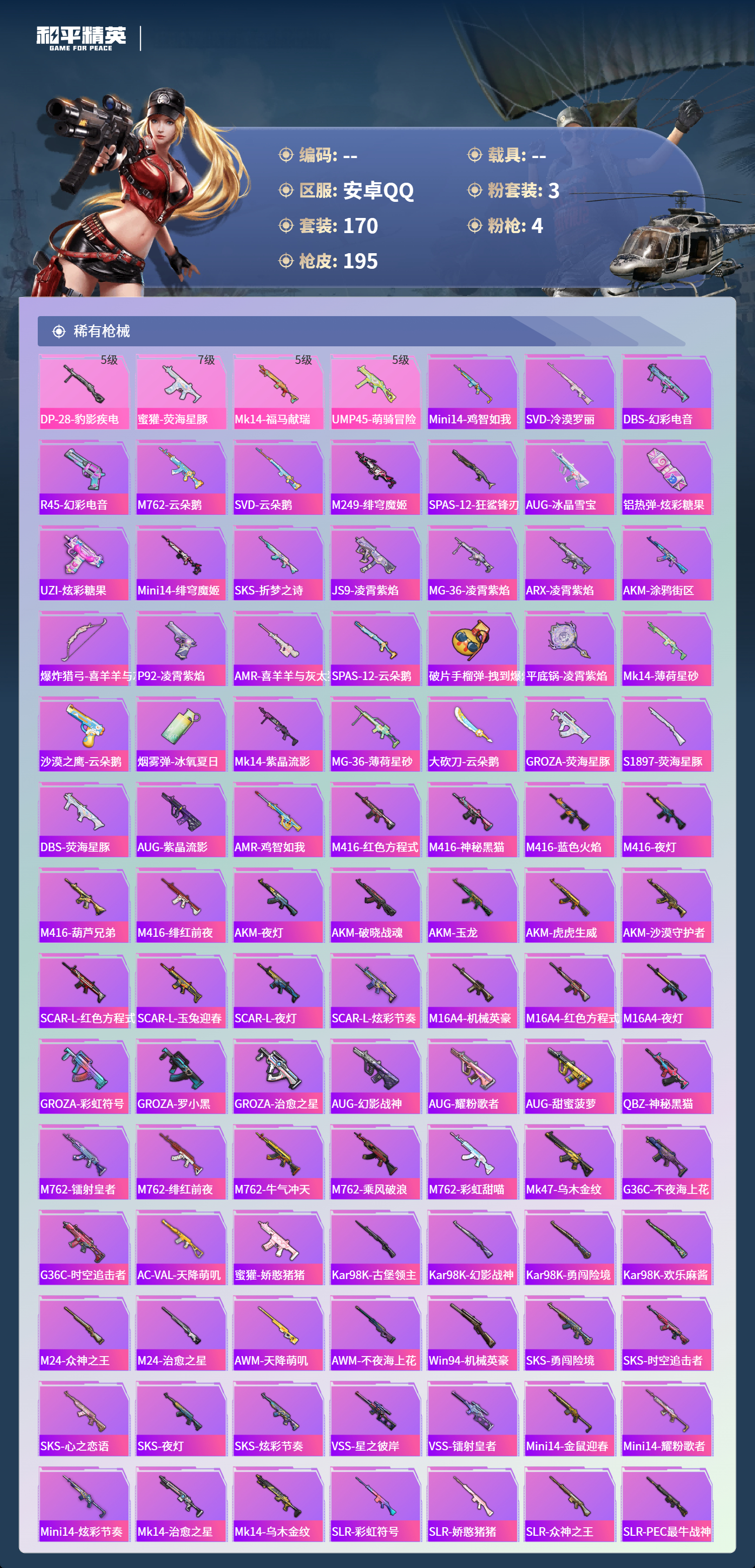 游戏区服:和平精英 / 安卓系统 / QQ账号
