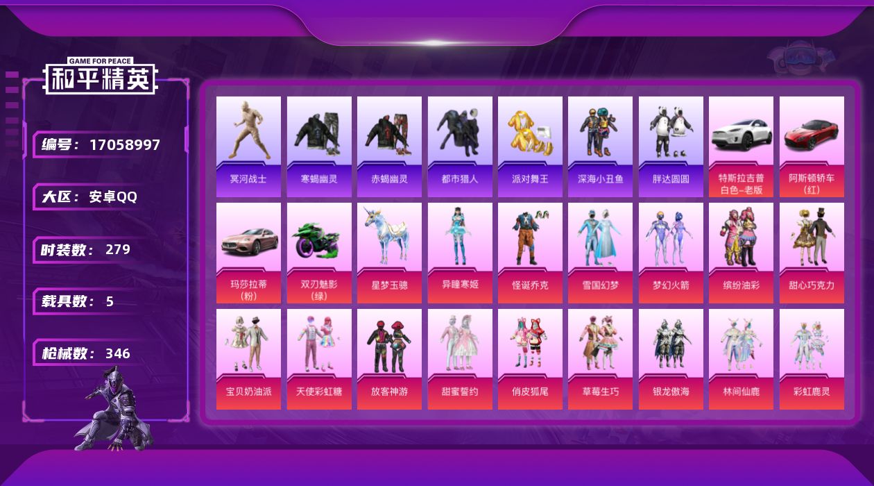 【505935】【可二次】【安卓QQ】双刃魅影绿色 木乃伊 雪国梦幻 特斯拉X白色 洛天依 林间仙鹿 UMP4雪国精灵 放客神游 M416-心之恋语 缤纷油彩 深海小丑鱼 浪漫波比 山涧鹿灵 Mini14-荧光虫舞 怪诞乔克 甜心娃娃 MG3-洛神天依 甜心巧克力 彩虹鹿灵 银龙傲海 AKM-炫紫旋律 M762甜蜜誓言 梦幻火箭 阿斯顿马丁S红色 天使彩虹糖 草莓生巧 宝贝奶油派 玛莎拉蒂粉色