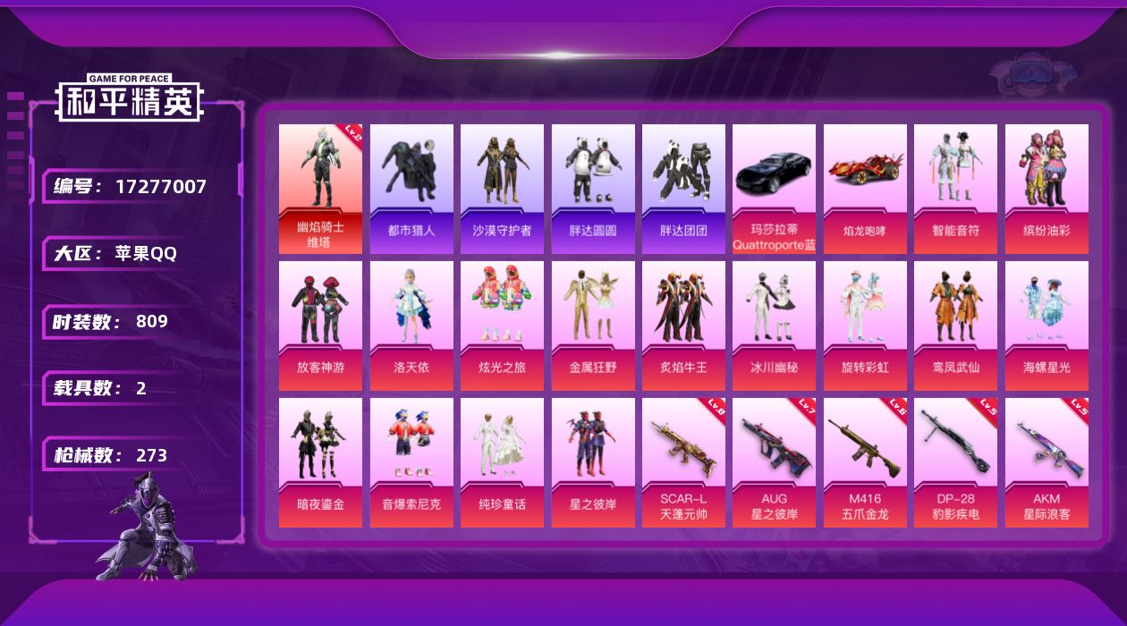 【506157】【不可二次】【苹果QQ】龟仙人 焰龙咆哮 AKM-星际浪客 漫步者 都市猎人 金属狂野 M416-心之恋语 缤纷油彩 智能音符 GROZA-旋转彩虹 AUG-星之彼岸 幽冥伯爵 M24-激战未来 M762-瑞龙福将 狂沙舞者 音爆索尼克 AKM-炫紫旋律 P90-电糖天使 星夜魔法师飞行翼 S686-奇异狩猎者 M416-五爪金龙 萌兔起飞 SPAS-12-音爆索尼克 东方飞龙
