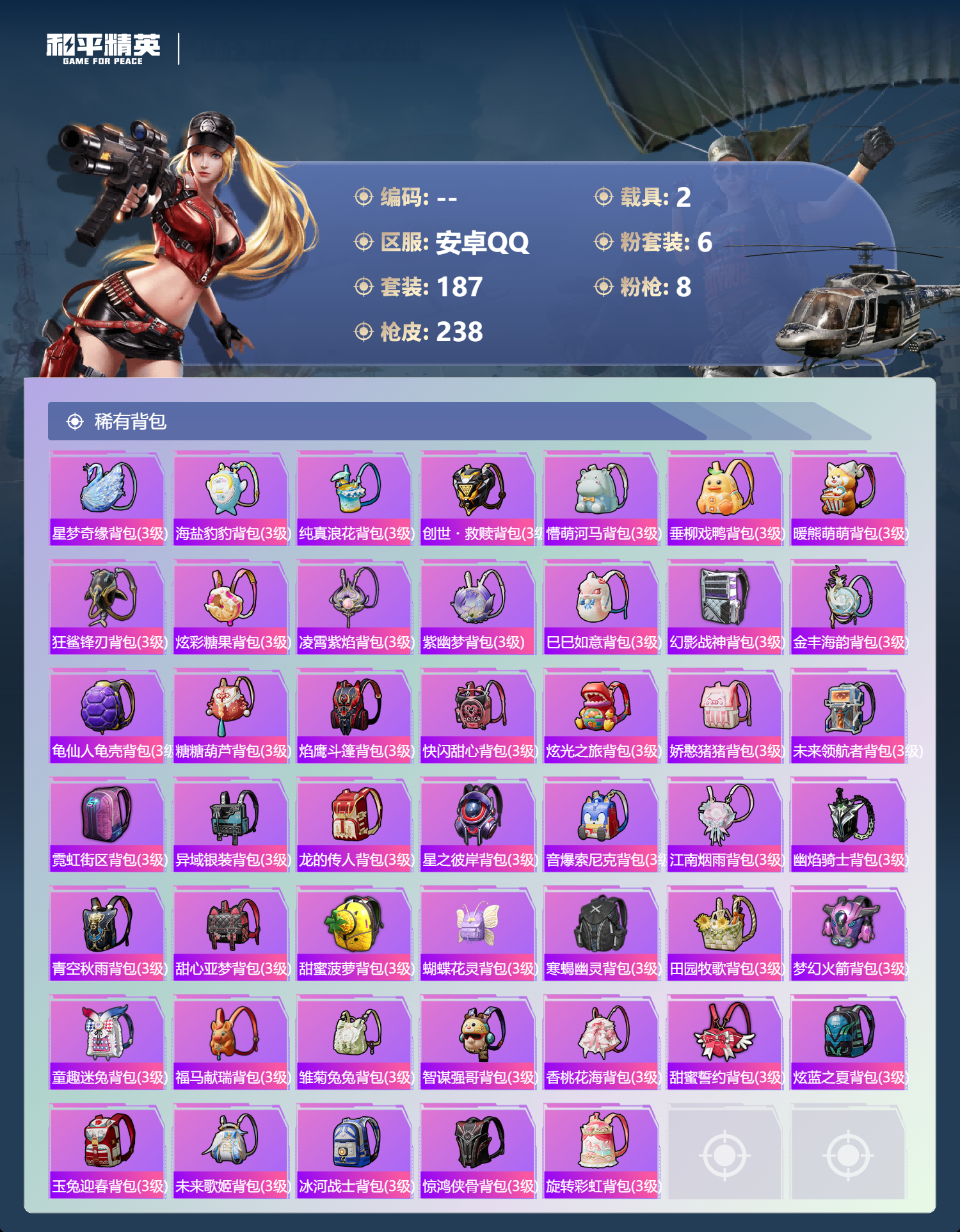 游戏区服:和平精英 / 安卓系统 / QQ账号