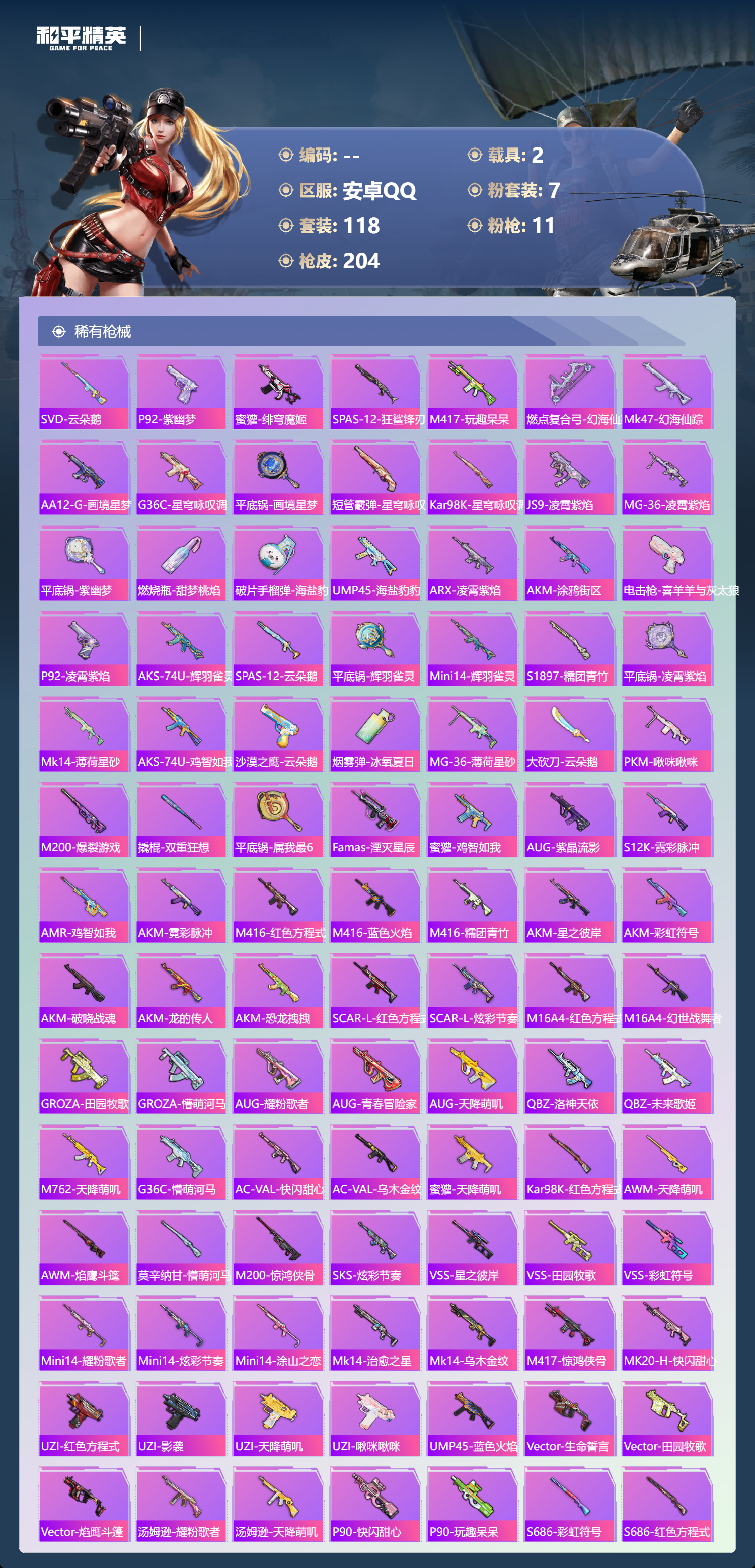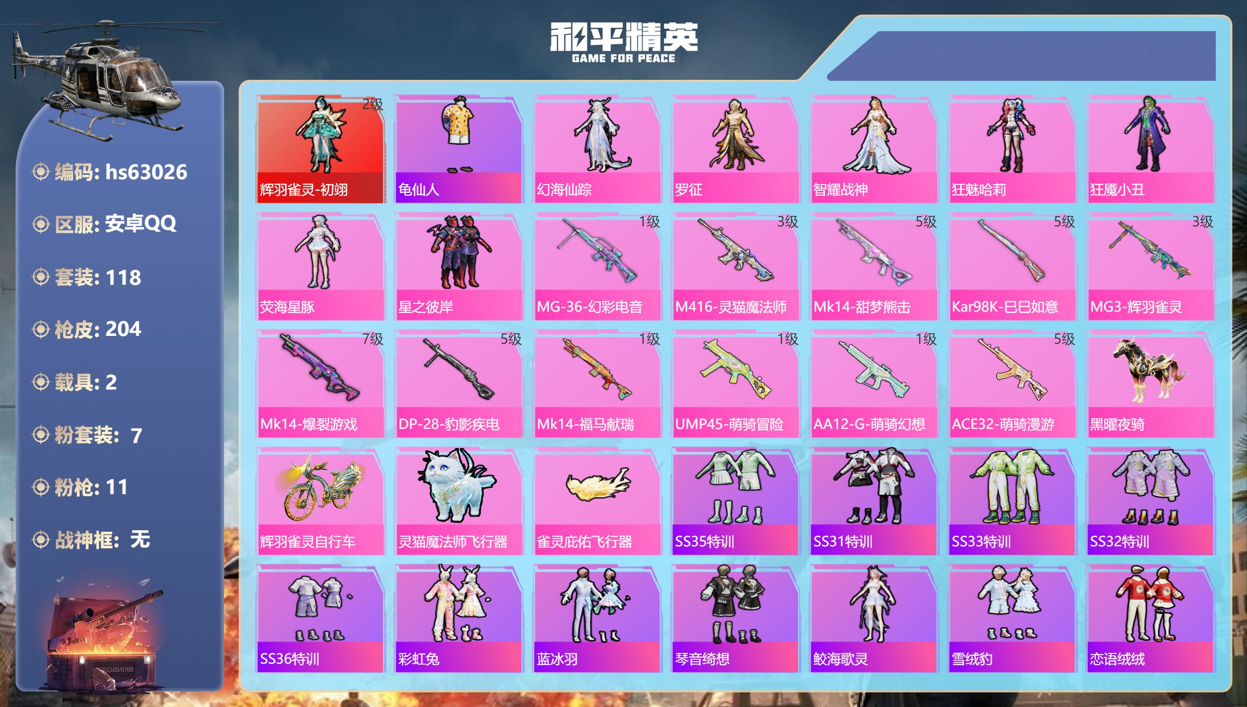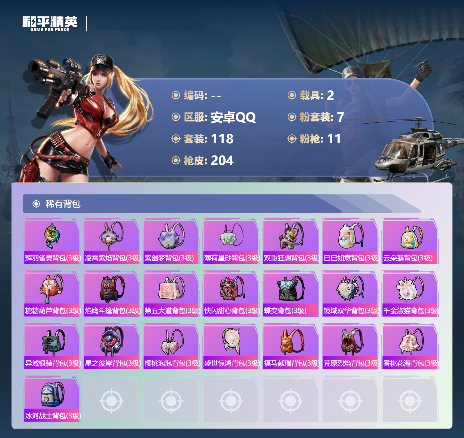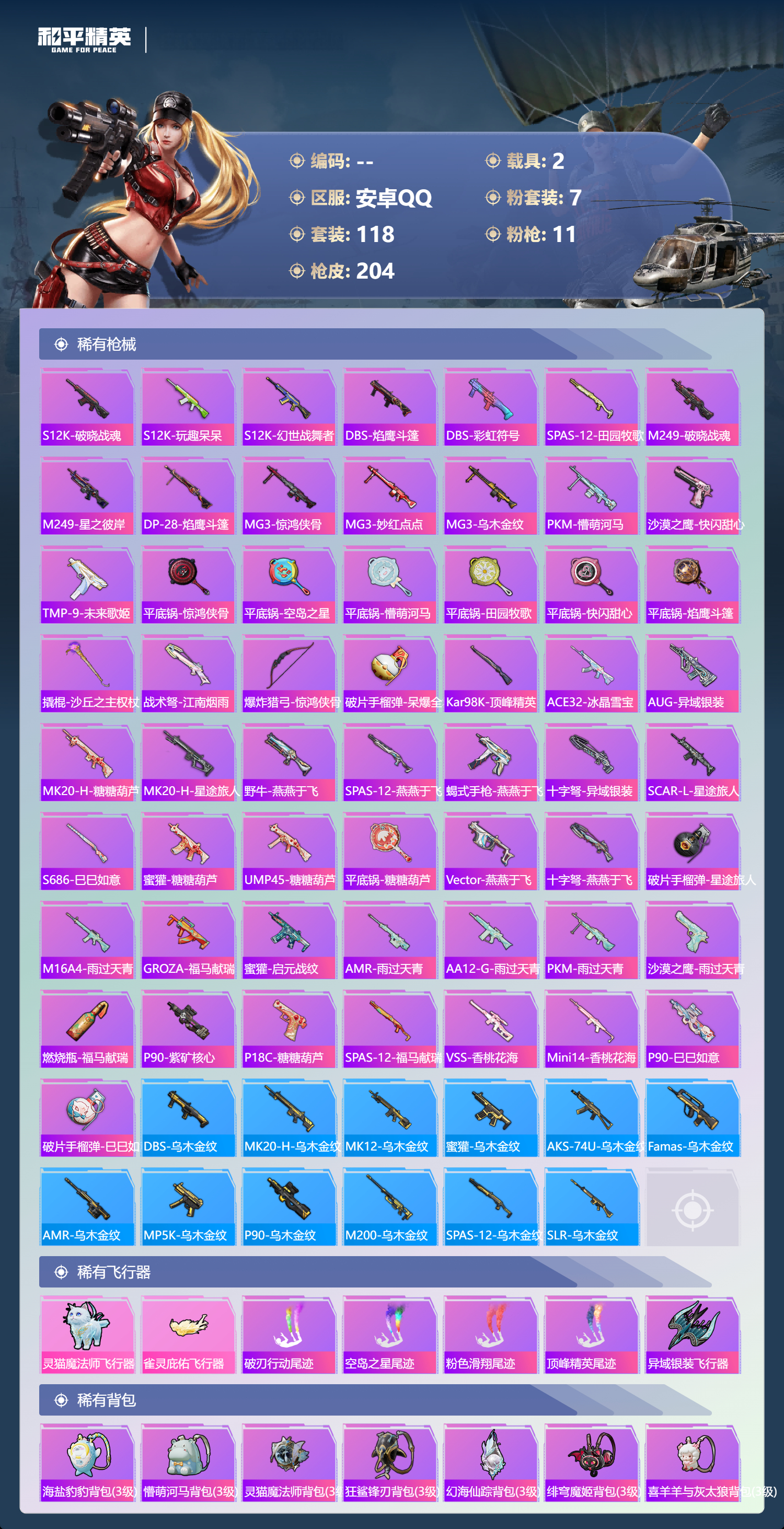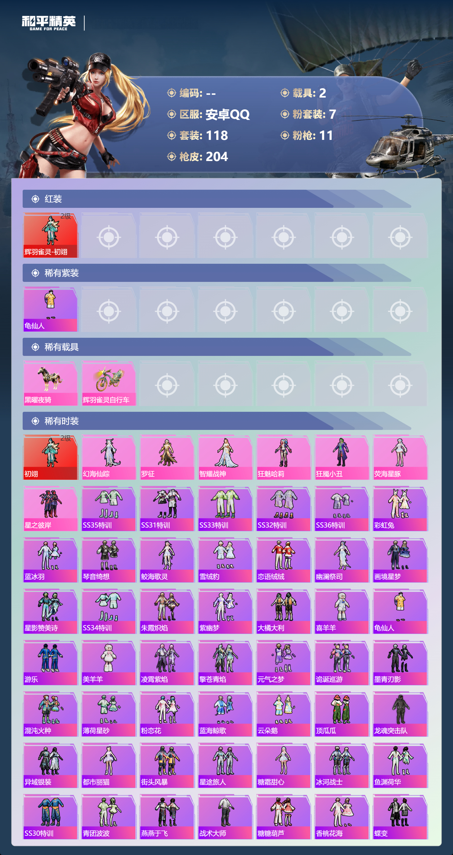 游戏区服:和平精英 / 安卓系统 / QQ账号