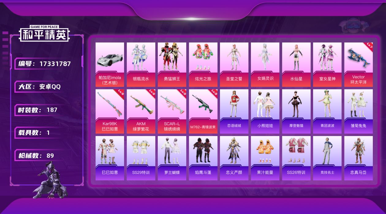 游戏区服:和平精英 / 安卓系统 / QQ账号
