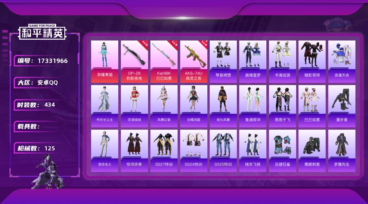 游戏区服:和平精英 / 安卓系统 / QQ账号
