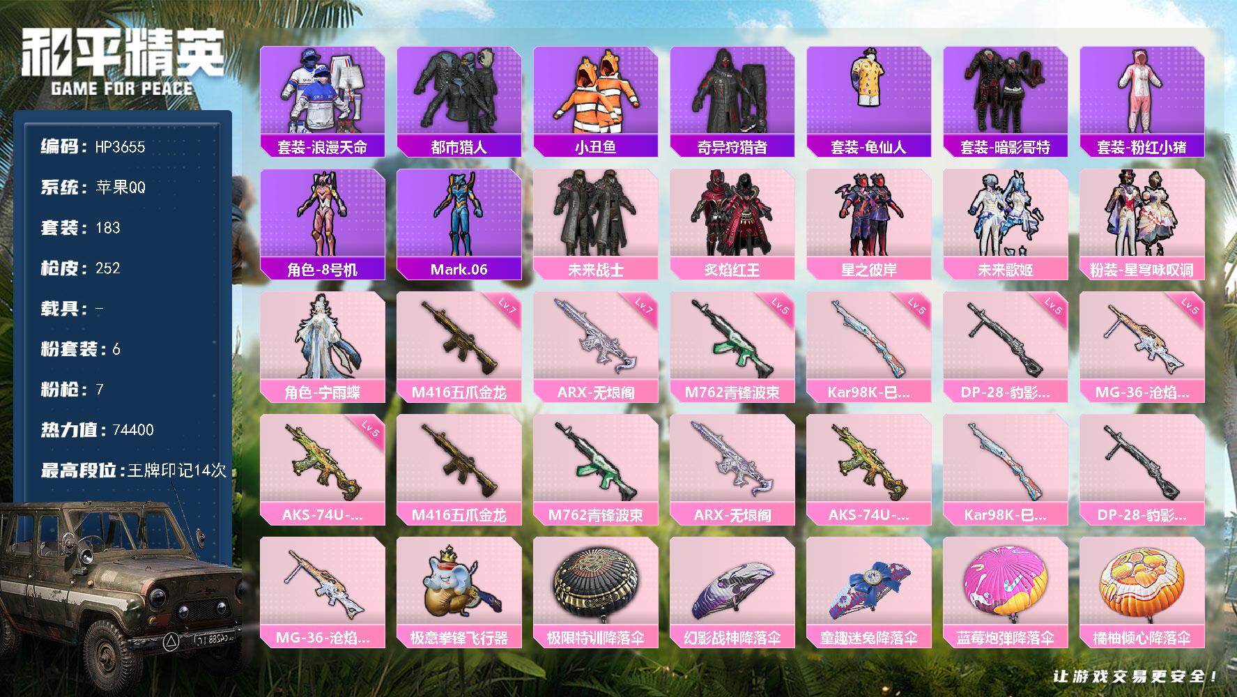 游戏区服:和平精英 / 苹果系统 / QQ帐号