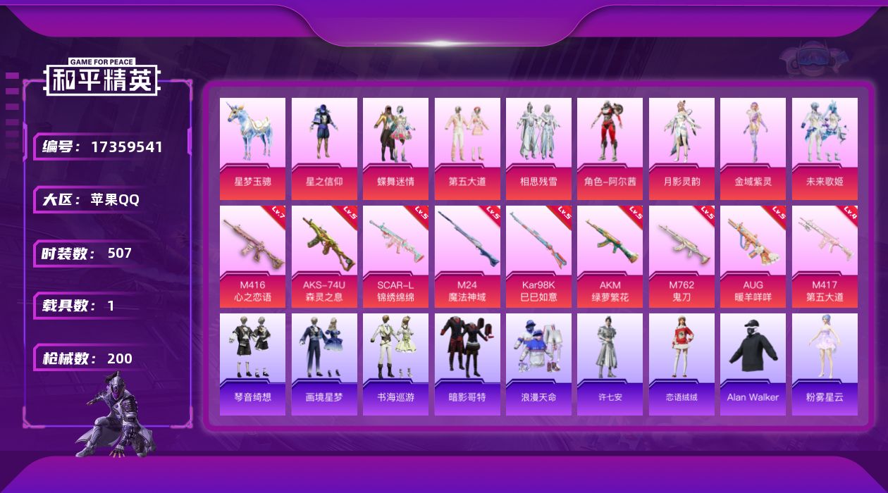 【518894】【可二次】【苹果QQ】星之信仰 龟仙人 AKM-绿萝繁花 星梦玉骢 M24-奇异狩猎者 M24-魔法神域 M417射手步枪 相思残雪 忍者信条 SCAR-L-锦绣绵绵 暗夜之虎 M416-心之恋语 蝶舞迷情 M417-第五大道 浪漫天命 暗影哥特 Vector-风花雪月 镜光幻境飞行翼