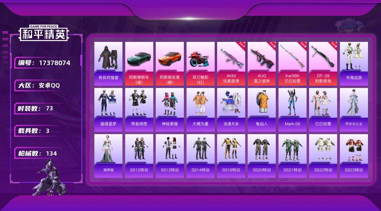 【520765】【不可二次】【安卓QQ】AKM-炫紫旋律 大橘为重 奇异狩猎者 双刃魅影红色 阿斯顿马丁X橙色 阿斯顿马丁S绿色 AUG-星之彼岸