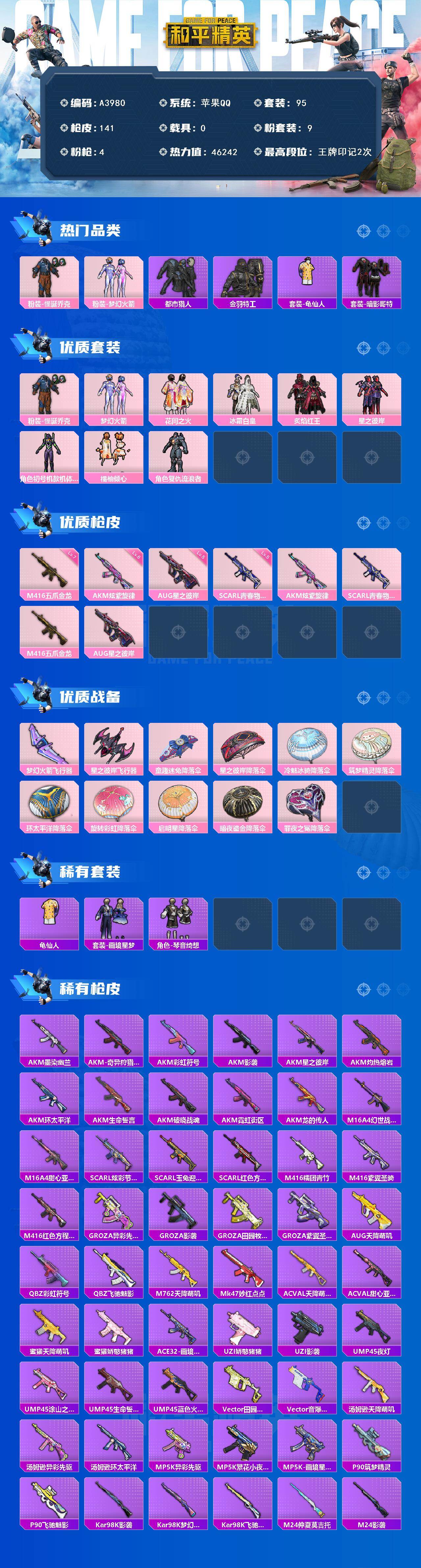 游戏区服:和平精英 / 苹果系统 / QQ帐号