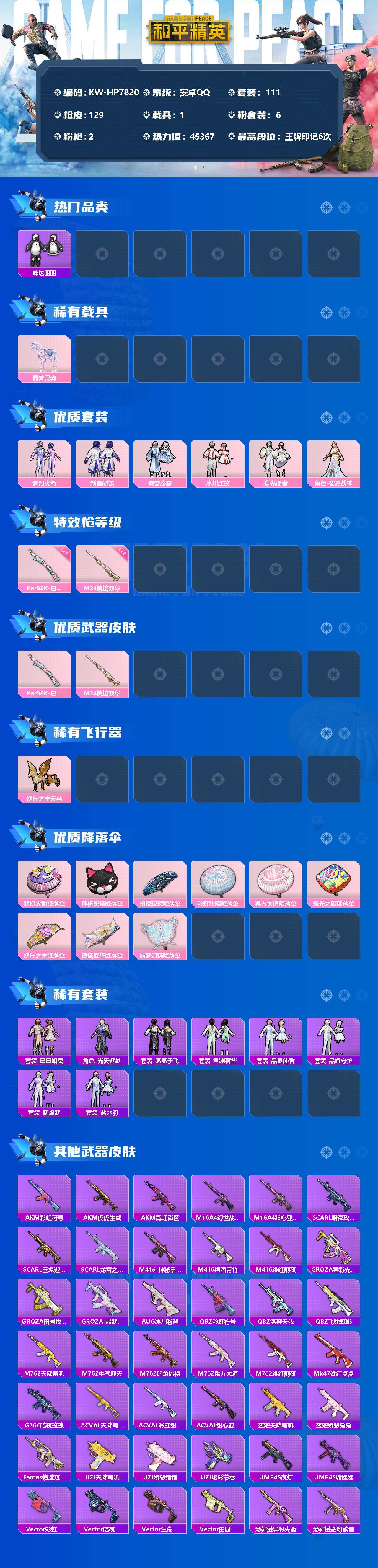 游戏区服:和平精英 / 安卓系统 / QQ账号