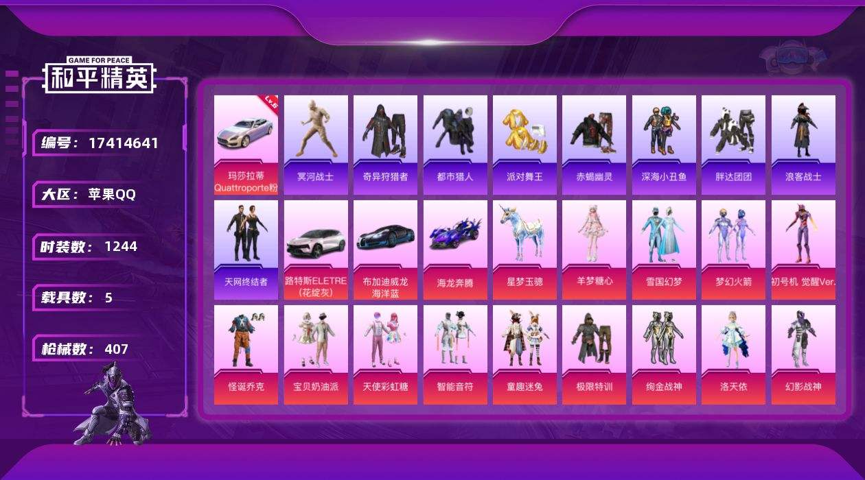 【526525】【不可二次】【苹果QQ】龟仙人 水银刺客 漫步者 M416-星际漫游 都市猎人 海龙奔腾 忍者信条 AUG-星梦奇缘 M416-至情至圣 快乐主宰 M416-心之恋语 麻辣鲜香锅 深海小丑鱼 SCAR-童趣迷兔 童趣迷兔 智能音符 AUG-星之彼岸 AWM-黄金龙骨 AKM-甜心宝贝 SCAR-L-梦幻火箭 相思残雪飞行器 怪诞乔克 M762-瑞龙福将 黑色刀锋 Vector-环