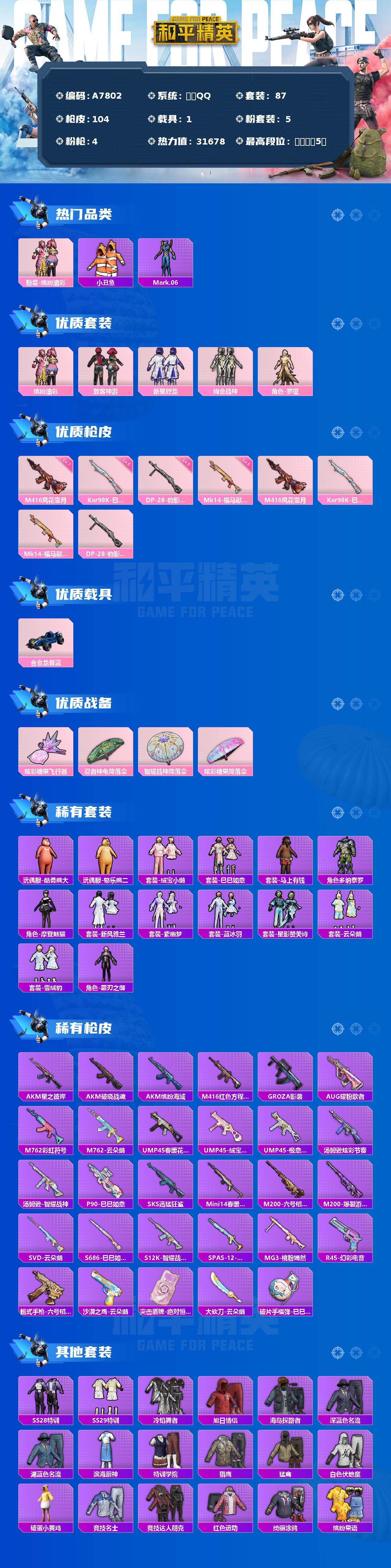 游戏区服:和平精英 / 安卓系统 / QQ账号