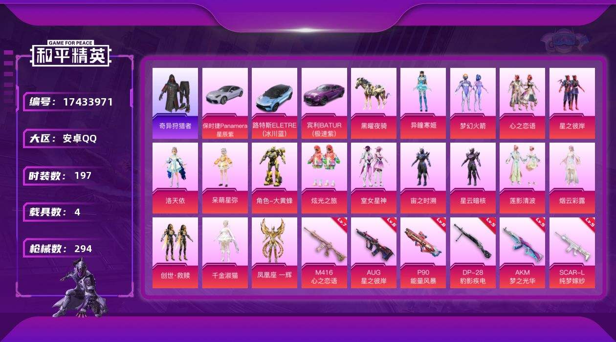【529100】【不可二次】【安卓QQ】心之恋语 梦幻火箭 AKM-梦之光华 M416-心之恋语 奇异狩猎者 洛天依 AUG-星之彼岸