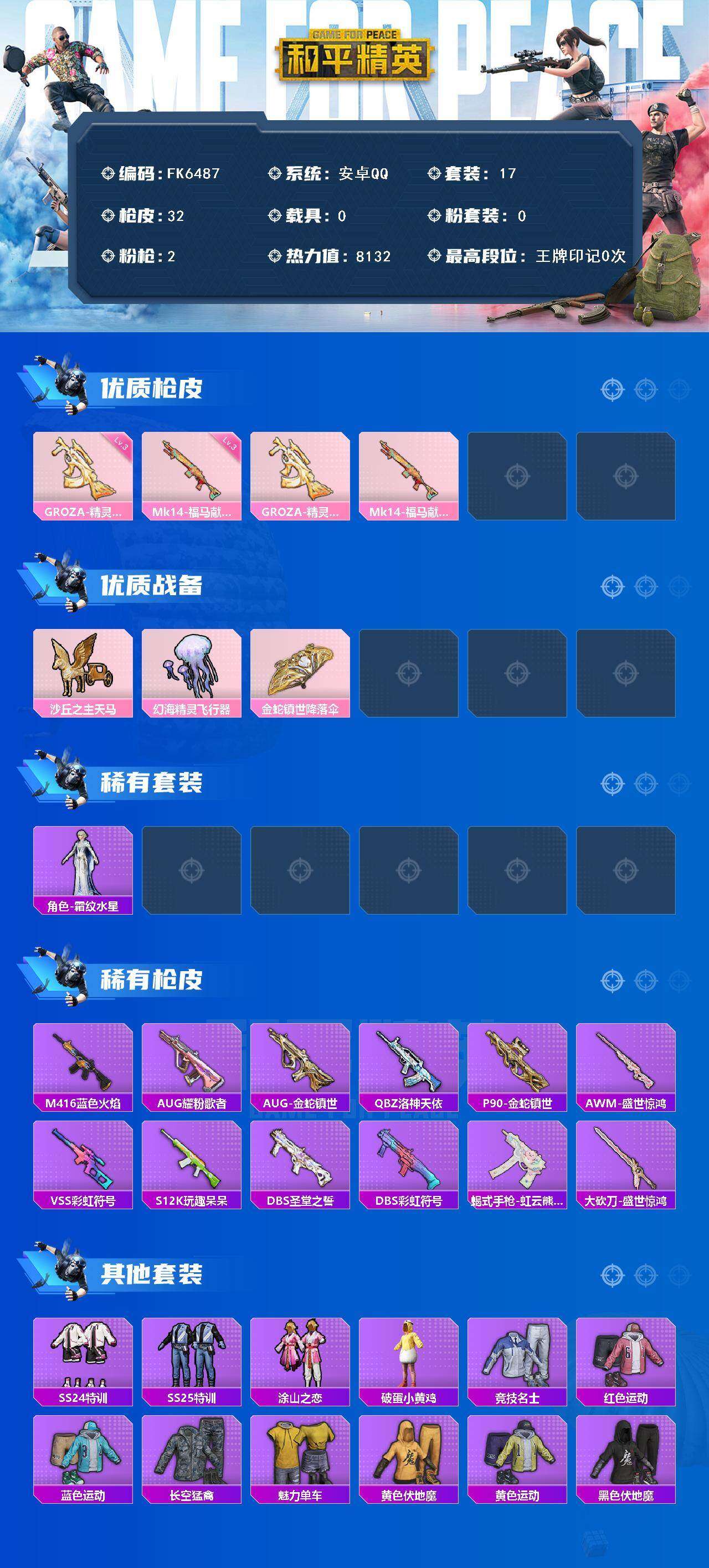 游戏区服:和平精英 / 安卓系统 / QQ账号