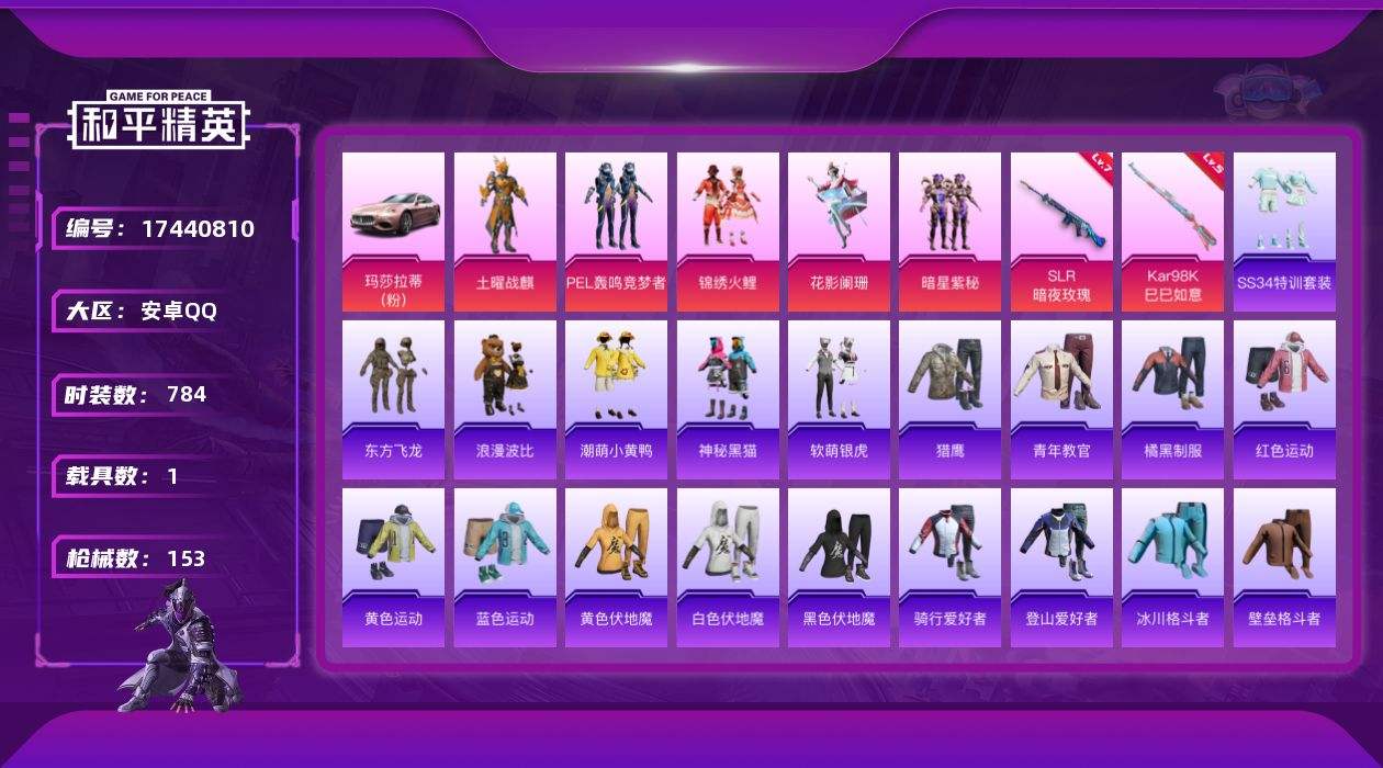 【530329】【可二次】【安卓QQ】暗星紫秘 粉甜马卡龙 东方飞龙 极速红龙 土耀战麟 浪漫波比 花影阑珊 激萌小黄鸭 抹茶蜜豆 软萌银虎 锦绣火鲤 潮萌小黄鸭 黑色刀锋 新侠客行 红酒骑士 白月香洋装 PEL轰鸣竞梦者 粉红小猪 玛莎拉蒂粉色 风华少年志 SLR-暗夜玫瑰 神秘黑猫 雪山精英 土曜战麒 怪笑疯兔