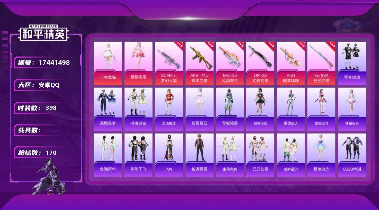 【530546】【不可二次】【安卓QQ】梦起落英 SCAR-L-梦幻火箭 龟仙人 漫步者 SCAR-L梦幻火箭