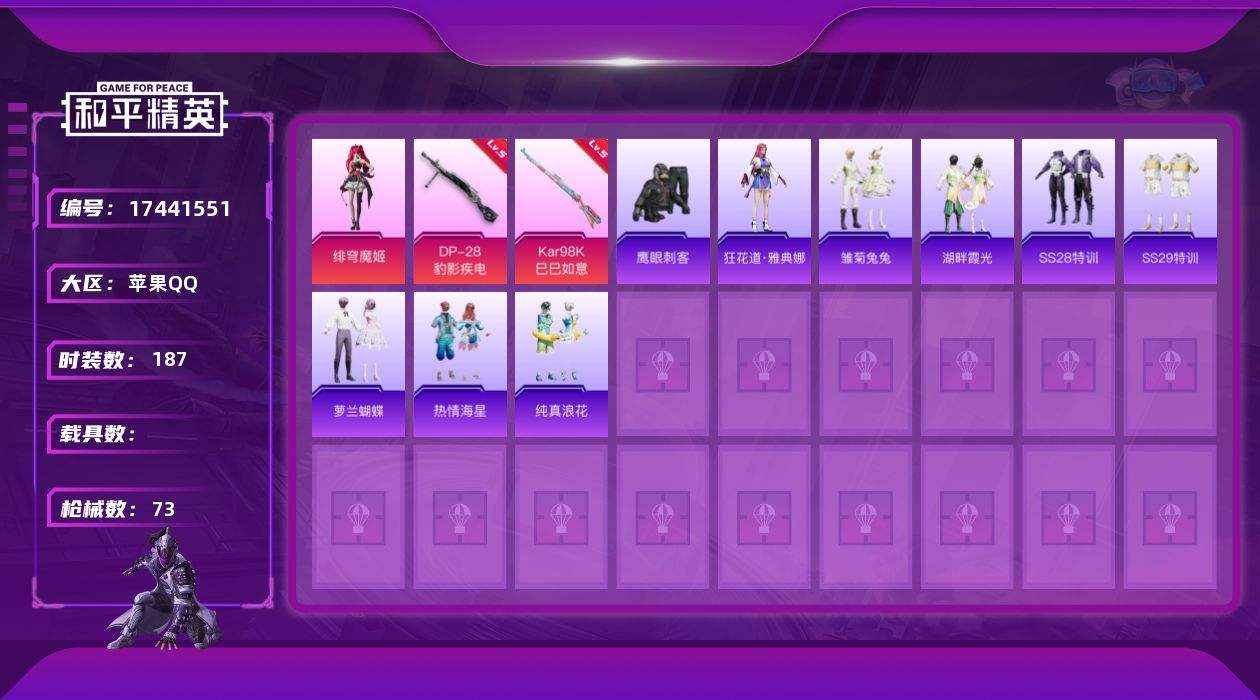 游戏区服:和平精英 / 苹果系统 / QQ帐号